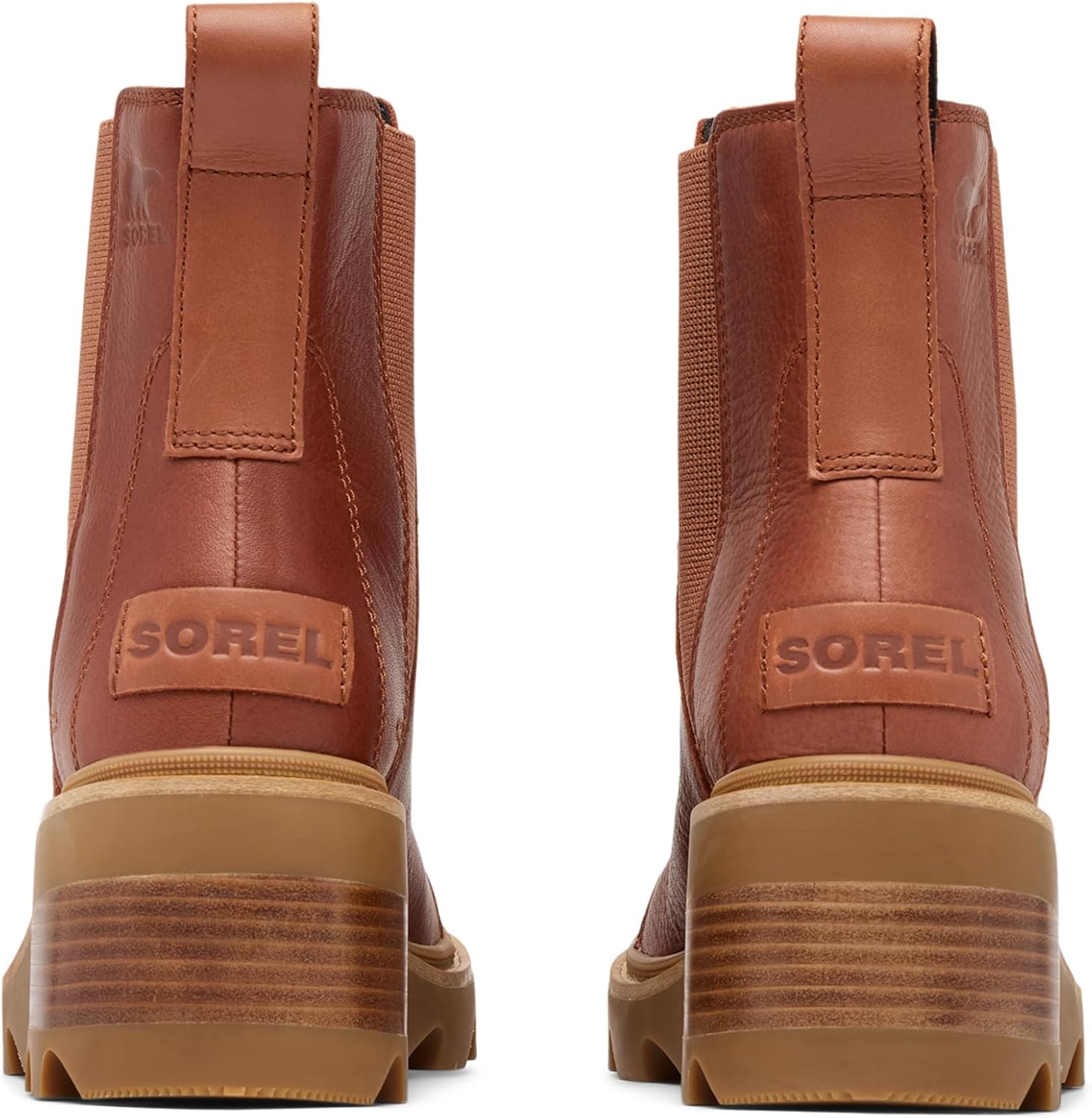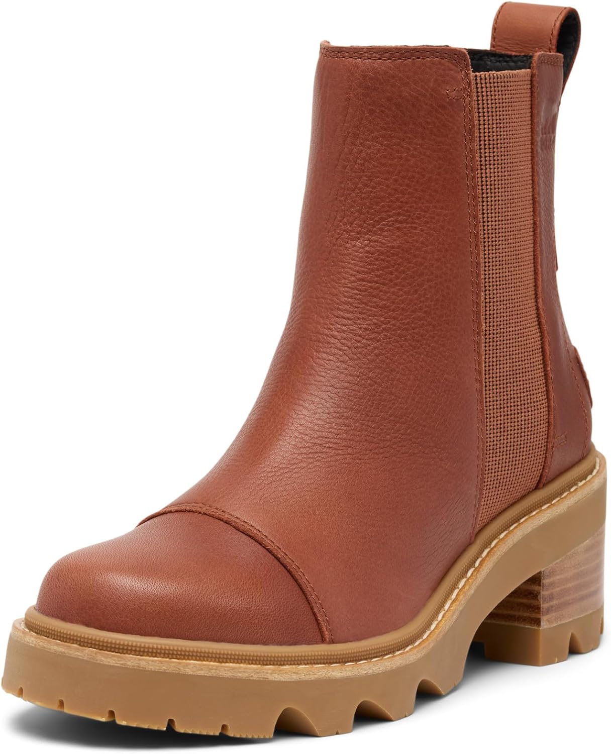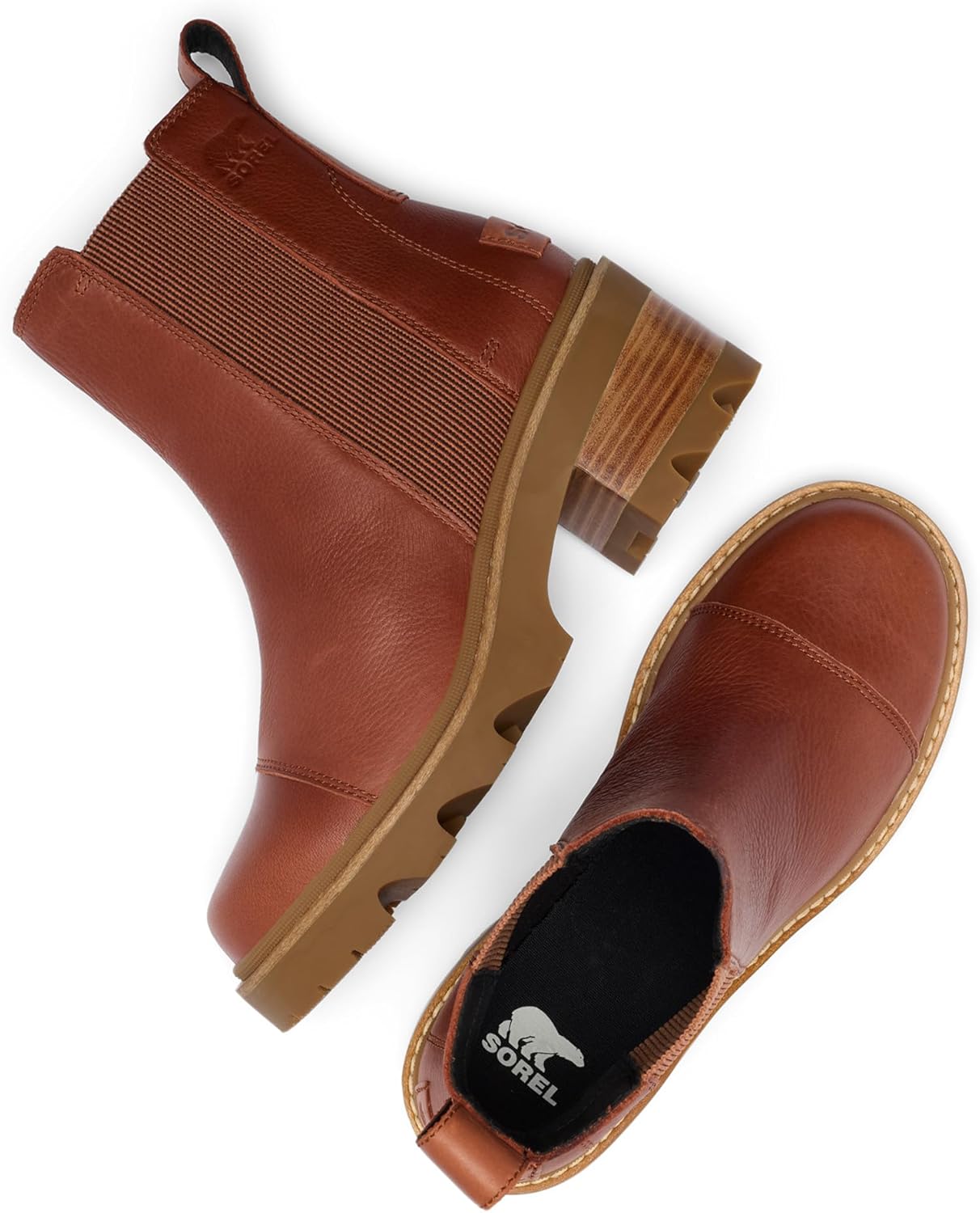 Модные зимние ботинки: Эти ботинки Челси от SOREL выполнены с верхом из кожи для долговечности и стиля; кожаные ботинки для женщин имеют подкладку из ткани и синтетических материалов.