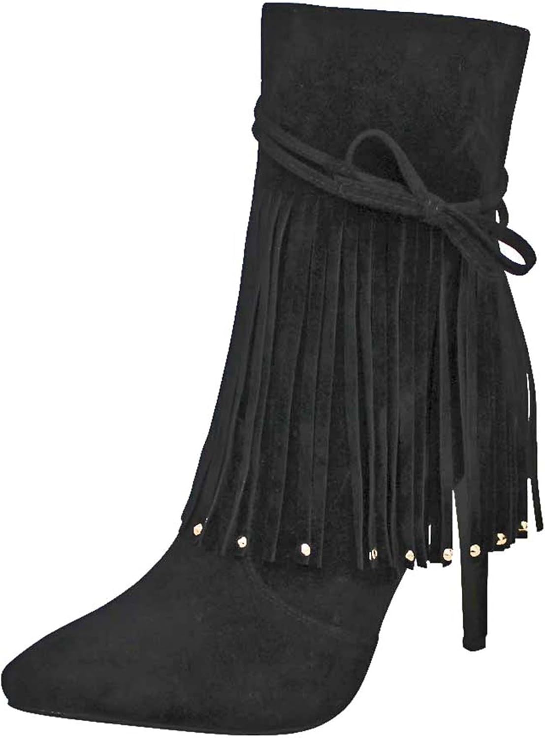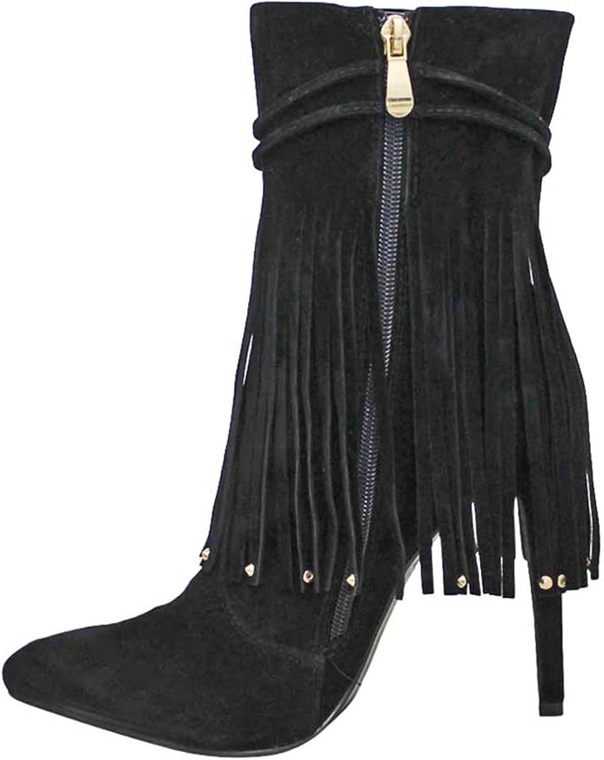 Бахрома с золотыми заклепками добавляет кокетливой легкости каждому шагу в этих женских ботильонах с заостренным носком. Завершенные классическим бантом на щиколотке, эти ботильоны на высоком каблуке станут идеальным дополнением к классическому образу для свидания. Эти туфли украшены уникальной бахромой с заклепками и подходящим бантом. Бахромчатые ботильоны имеют мягкую искусственную замшу снаружи и удобную внутреннюю подкладку. Боковая молния на этих бахромчатых ботильонах обеспечивает легкость при надевании и снятии. Артикул: F01251 SKU: F01251. Высота ботильона составляет примерно 10,5 дюймов от низа каблука до верхнего края. Высота каблука - 4,5 дюйма. Длина бахромы - 5,25 дюйма.