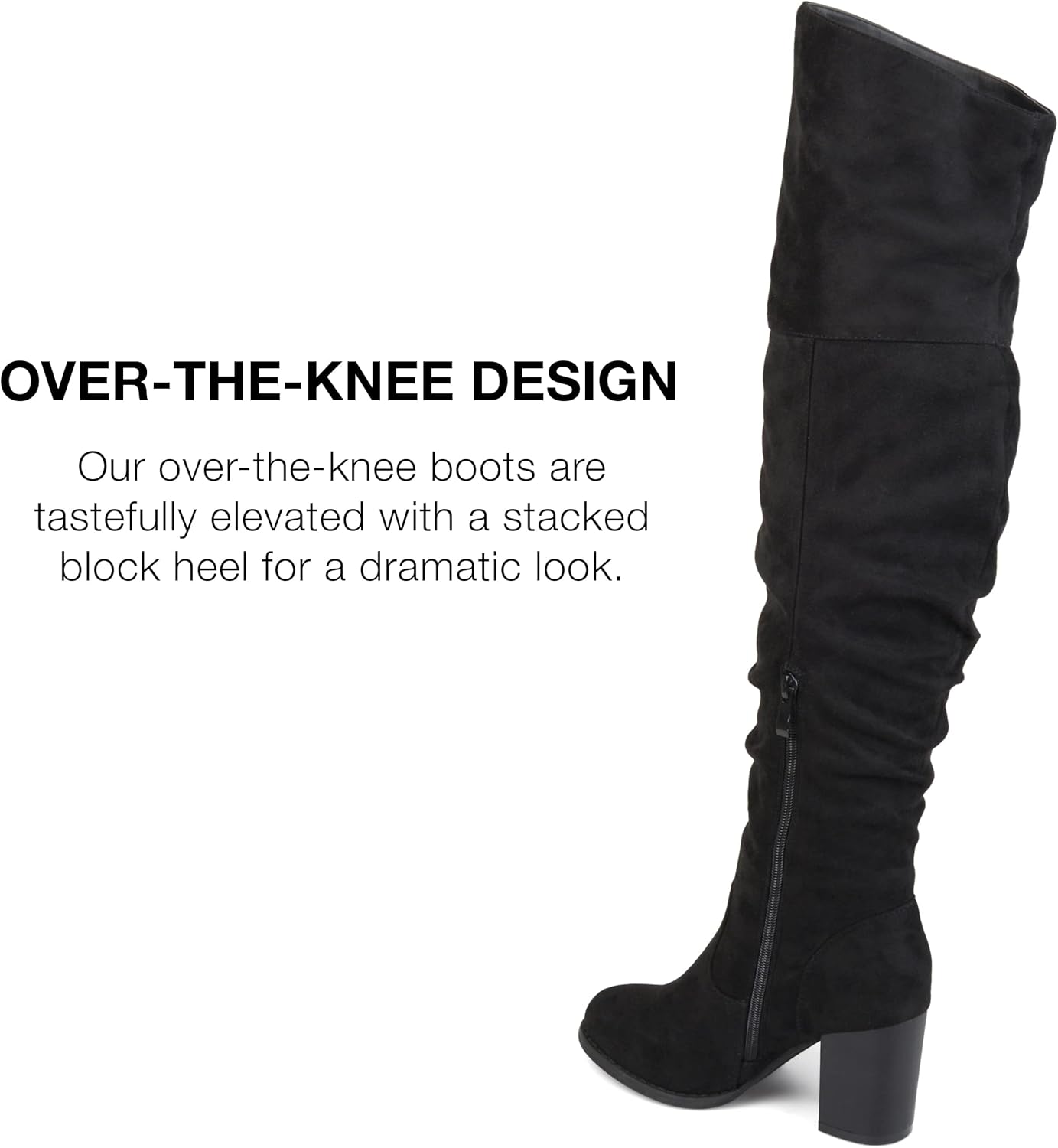Ботфорты с драпировкой выше колена от Journee выполнены из мягкого искусственного замша, поднимаются выше колен и имеют рельефную переднюю часть, создающую стильный акцент. Закругленный носок и массивный высокий каблук завершает дизайн. В Journee наши модели ботинок сделают ваш образ еще более эффектным. Они станут завершающим штрихом, благодаря которому ваш наряд будет выглядеть так, словно со страниц модного журнала.