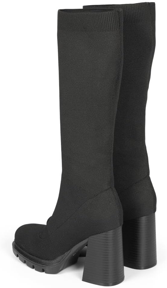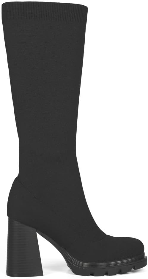 Создает ощущение комфорта, не жертвуя удобством. Черные высокие носки-сапоги с каблуком и протекторной подошвой. Имеют дышащую кожаную подошву с подкладкой и резиновую подошву. Соответствуют всем новинкам осенне-зимнего сезона.