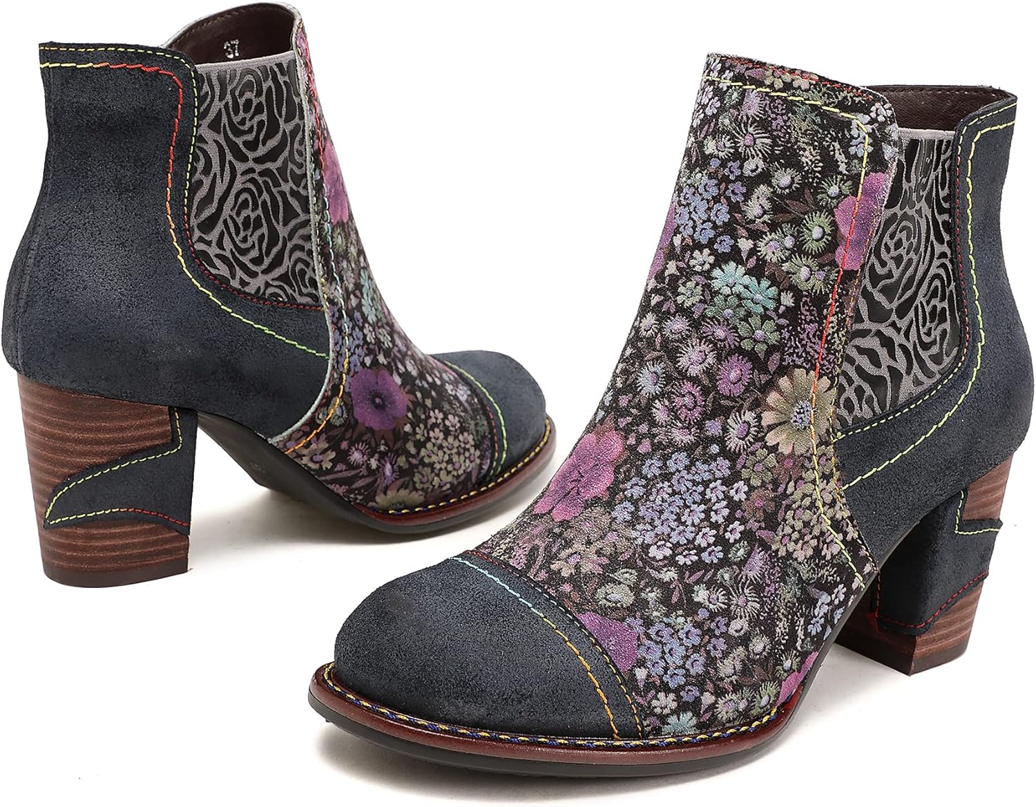 1. Ботинки на каблуке из настоящей кожи 2. Высота каблука: 4,5 см 3. Вышивка с боковой молнией