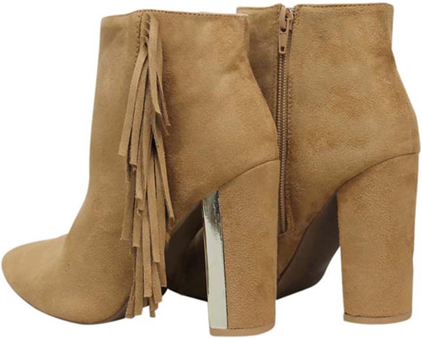 Эти ботильоны из искусственной замши имеют уникальный и стильный каблук с золотым ободком. Боковая молния по всей длине делает эти ботильоны удобными для надевания и снятия. Мягкая внешняя отделка и стильная бахрома хорошо сочетаются с джинсами или леггинсами. F01257