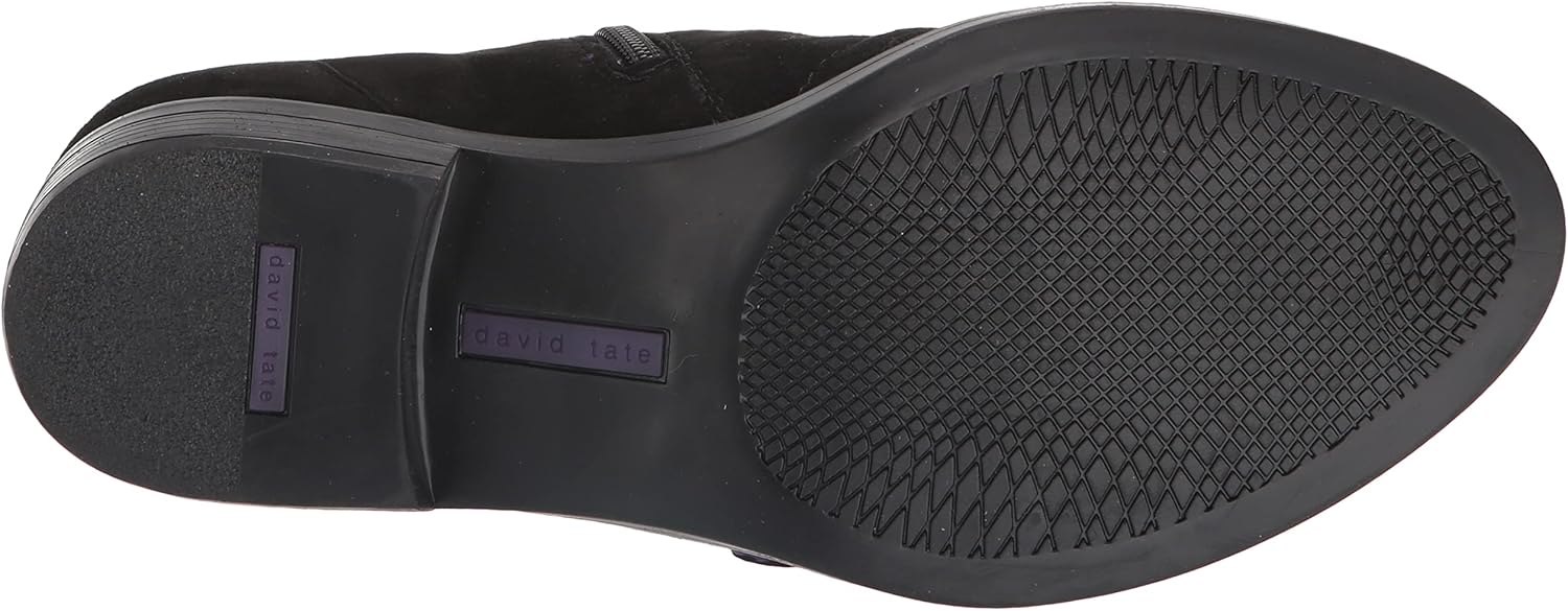 Модель David Tate(r) Torino выполнена с верхом из нубуковой кожи, конструкцией без застежек с эластичными вставками по бокам, петлей на пятке, округлым мысом и съемной стелькой.