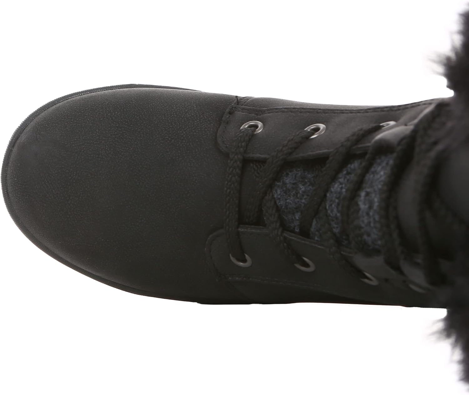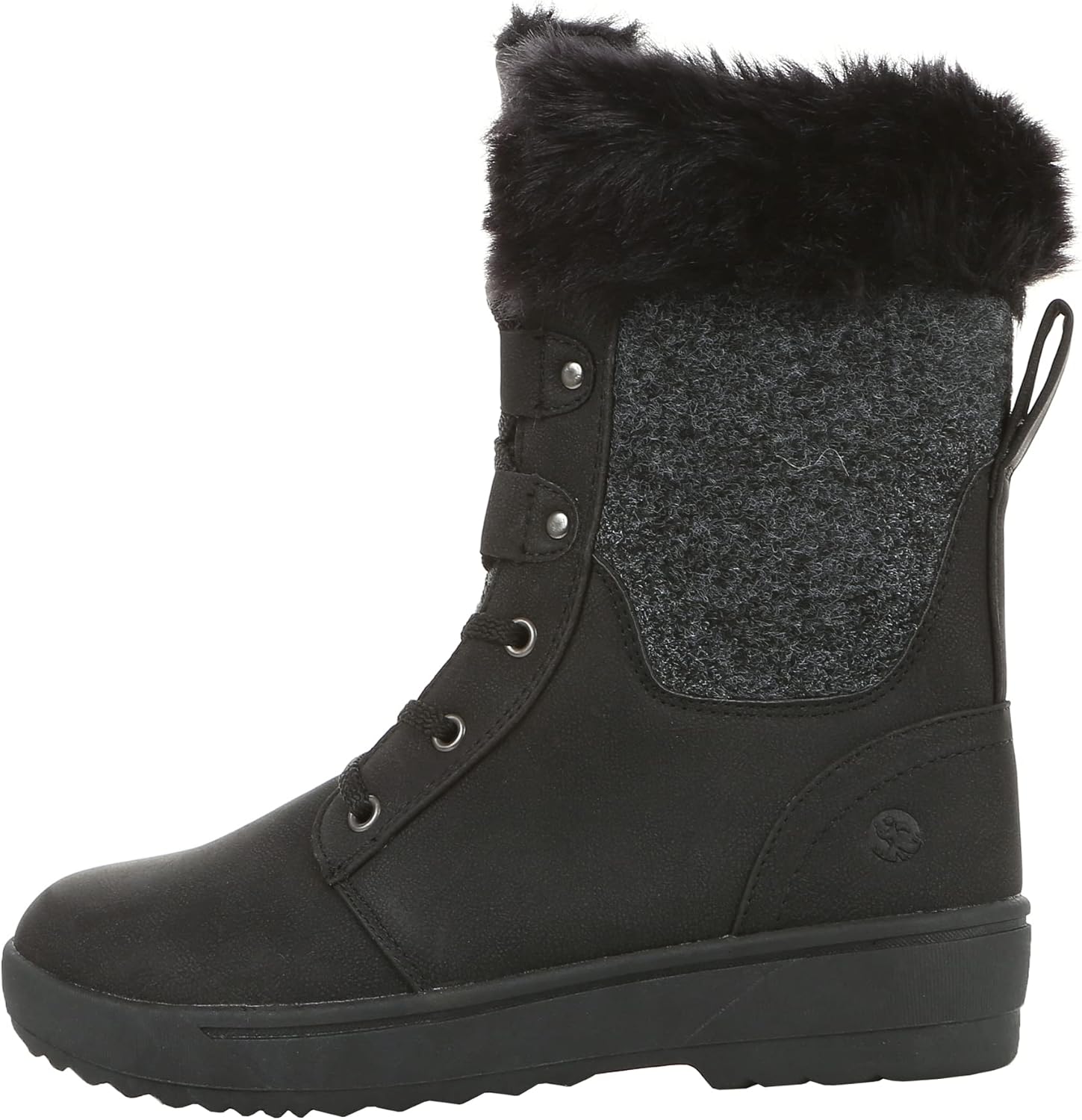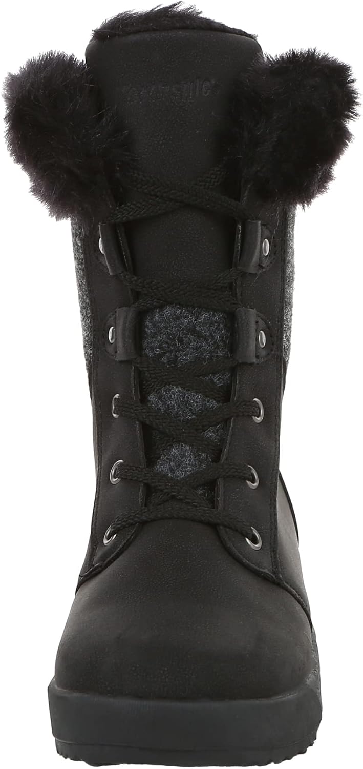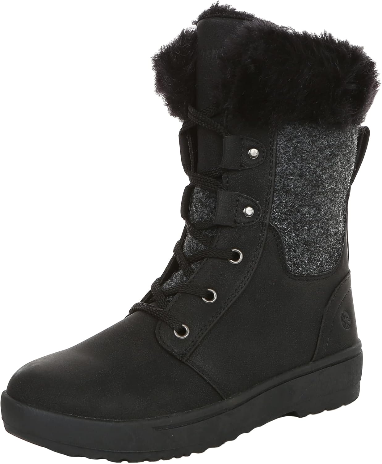 Прочный верх из синтетической кожи с вязанными или текстильными вставками, мягкий искусственный мех вокруг воротника и легкий корпус из фактурной веганской кожи с полностью амортизирующей подкладкой. Модель Brookelle предлагает модный дизайн, который сохраняет ноги в тепле в холодные зимние дни; язычок с защитой помогает удерживать мусор снаружи. Съемная стелька из EVA с верхним слоем из бихера и стальной вставкой обеспечивает дополнительную амортизацию и стабильность для ваших ног. Быстрая шнуровка позволяет легко и надежно регулировать посадку. Прочная многослойная подошва из TPR обеспечивает сцепление, поглощение ударов и хорошую устойчивость к истиранию в холодных условиях.