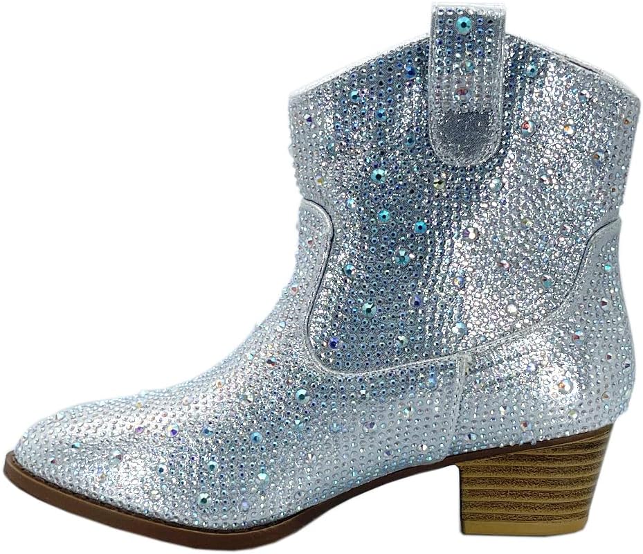 Ботильоны ABSOLEX с крупным каблуком и стразами, Silver