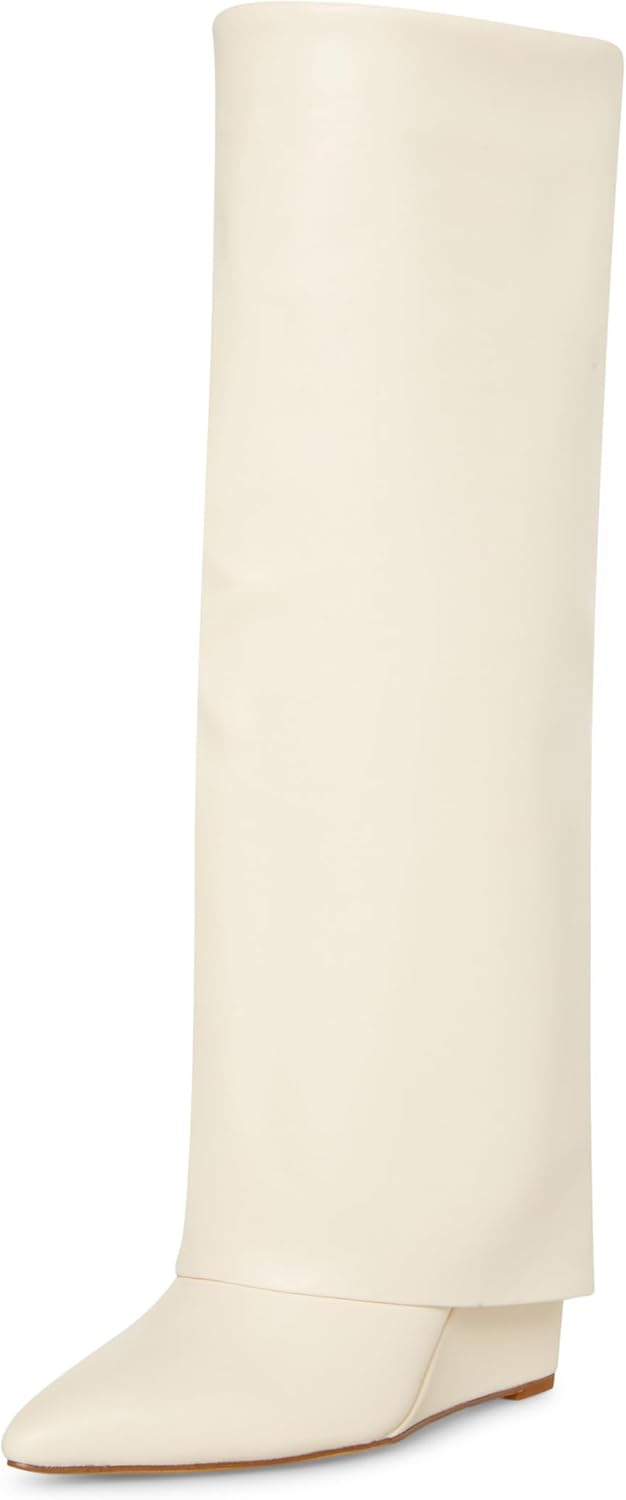 Сапоги EVANNDER создают изящный, но заметный силуэт с зажатым клиновидным каблуком, складчатой конструкцией и остроконечным носком, который выглядывает снизу. Современные и утонченные, эти сапоги можно носить как элегантно, так и повседневно, но они всегда привлекают внимание.
