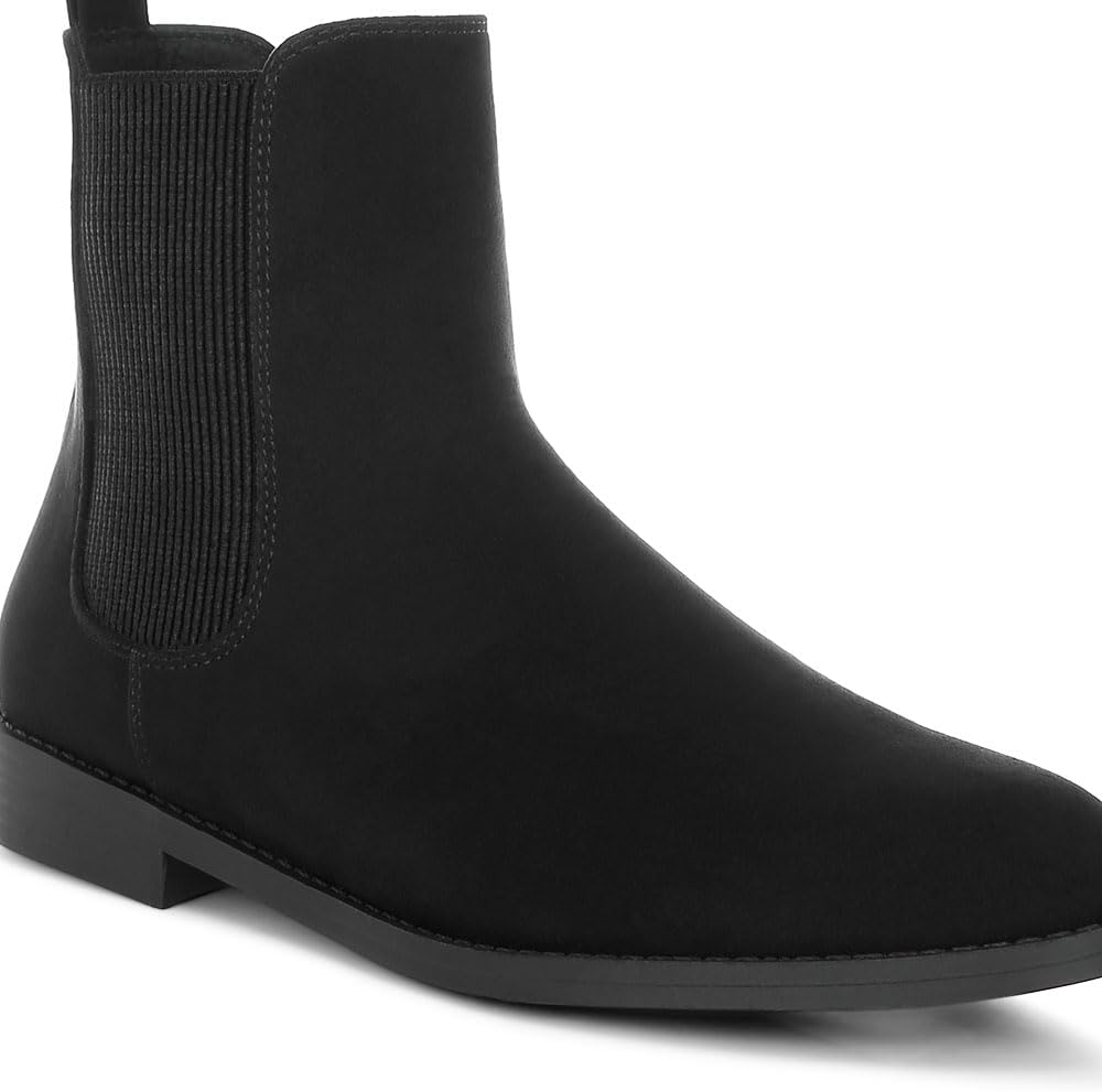 Ботинки Челси из искусственной замши - незаменимая вещь благодаря своему минималистичному стильному виду. Низкий массивный каблук удобен, а петельки для носки делают их легкими в надевании. Эти ботинки универсальны и прекрасно подойдут ко всем вашим повседневным образам.
