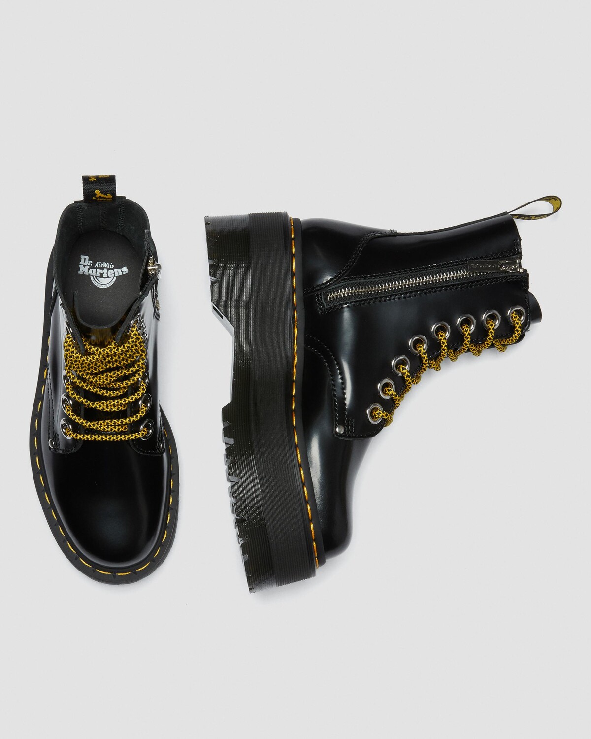 Ботинки Dr. Martens Jadon Max представляют собой вершину платформенной обуви от легендарного бренда. Высокая подошва создает выразительный силуэт, а агрессивная текстура обеспечивает надежное сцепление с поверхностью. Модель выполнена изButtero — гладкой кожи с атласным блеском, обладающей высокой эластичностью и устойчивостью к износу.