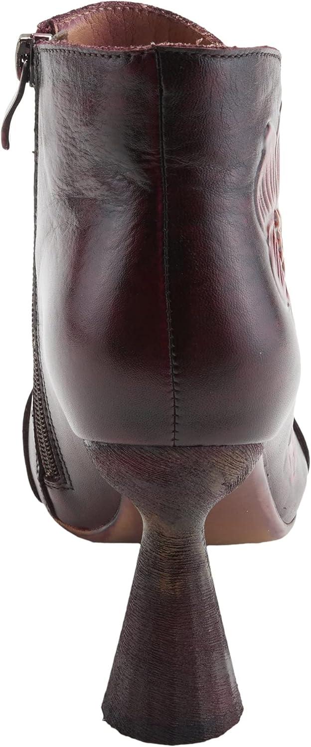 Стиль L`Artiste: Cosmopolitan Ботильоны из высококачественной кожи с красивым тиснением в виде цветов на архитектурном каблуке. Верх: кожа Подкладка: бархат Стелька: синтетическая Подошва: резина Застежка: молния Высота каблука: 3 1/4" Высота голенища: 4" Обхват: 9" Особенности: - Ручная роспись, стелька с подкладкой, премиум Отказ от ответственности: Продукция L'Artiste изготавливается из натуральной дубленой кожи с использованием традиционных техник ручной росписи. Этот уникальный процесс обработки позволяет создавать естественные цветовые вариации для аутентичного внешнего вида и красоты.