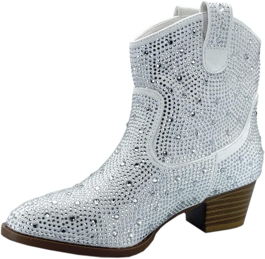 Ботильоны ABSOLEX с крупным каблуком и стразами, White