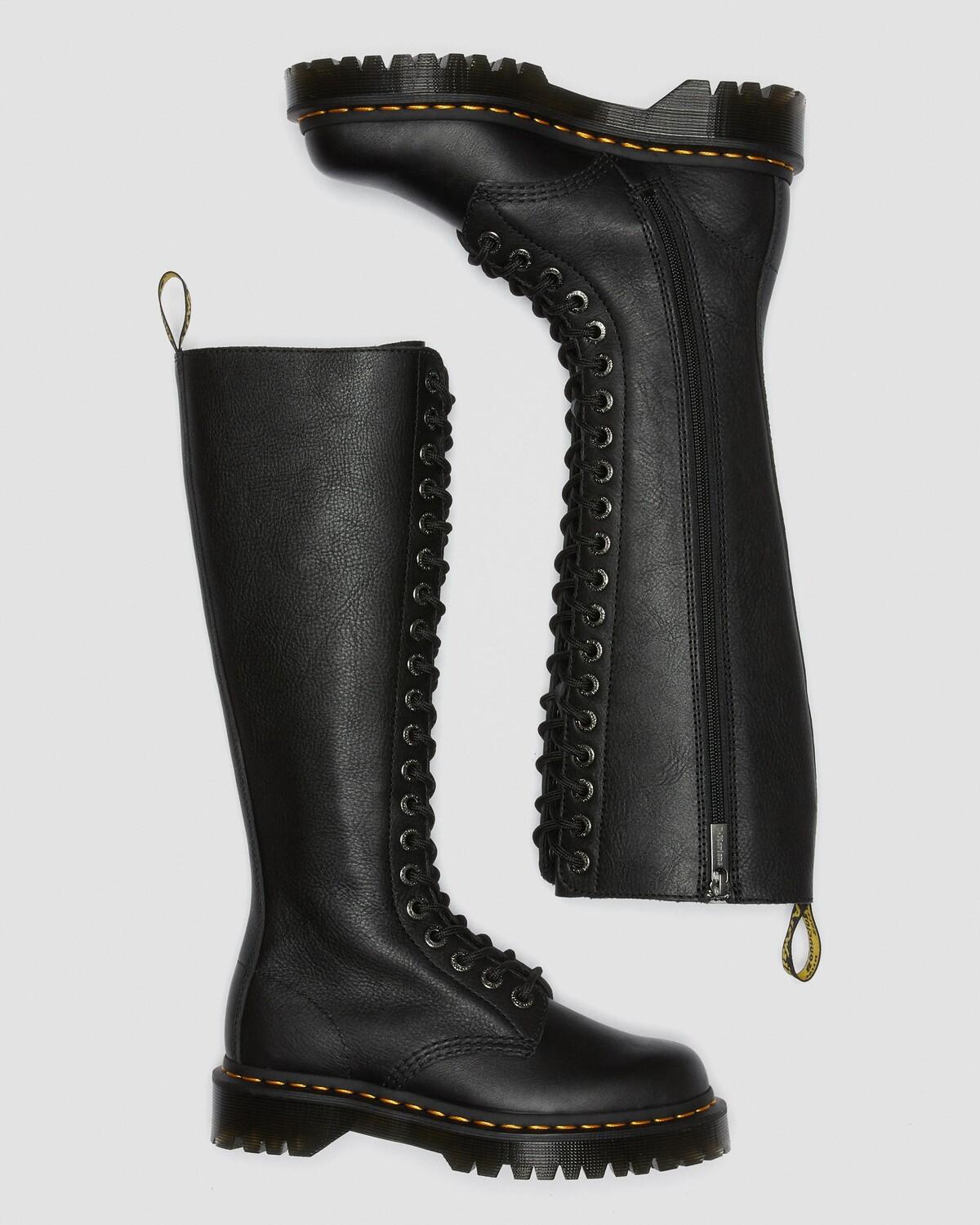 Высокий. Жесткий. Возвышающийся. Будьте услышаны в наших мощных багажниках 1B60. Сапоги до колена, оснащенные нашей подошвой Bex двойной высоты для еще большей высоты и посадки, имеют выдающийся силуэт с 20 глазами. Созданные для смелых, они изготовлены из мягкой кожи Pisa Nappa и отделаны внутренней молнией для легкого доступа, а также нашей классической желтой прострочкой и петлей на пятке. Внутренняя молния на щиколотке для удобного надевания и снятия.