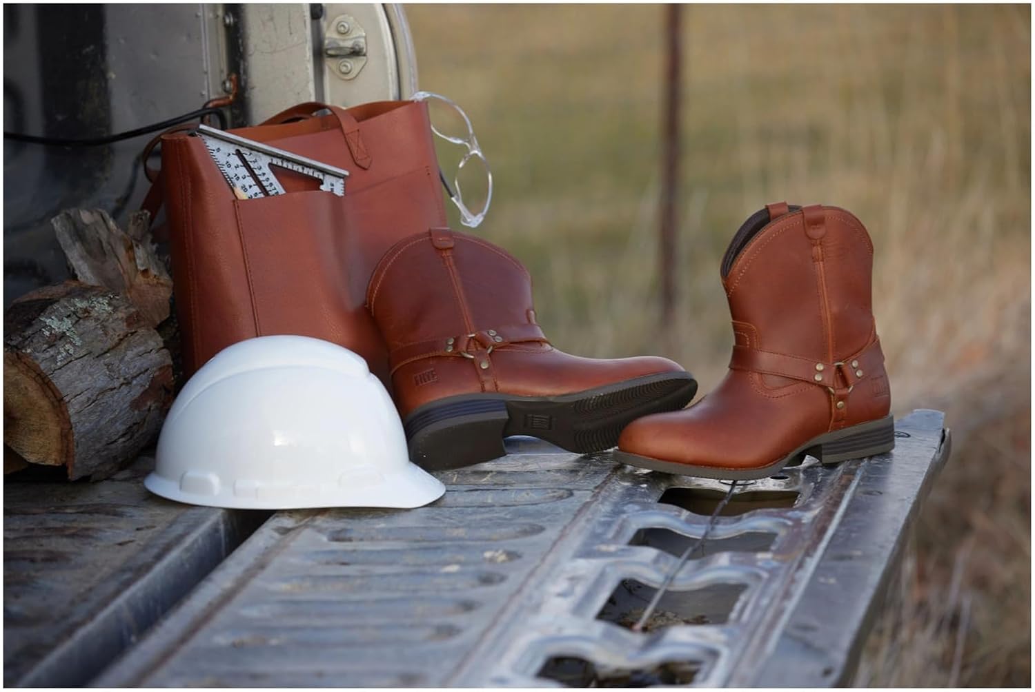 Frye, оригинальные мастера американской обуви, предлагают свой культовый стиль и высокое качество ремесленного исполнения на рынке защитной обуви с женскими рабочими ботинками Safety-Crafted Harness Boot, воплощая и подчеркивая наследие, качество и мастерство в работе с натуральной масляной замшей, стальными носками, противоскользящей подошвой, четко выраженными каблуками и защитой от электрического тока. Тип обуви: рабочие ботинки с ремнями Тип носка: стальной Верхний материал: натуральная кожа полного зерна Цвет: коричневый Подкладка: впитывающая влагу подкладка для комфорта и поглощения запаха Стелька: стелька Comfort-Crafted от Frye Supply Подошва: прочная резиновая подошва с четко выраженными каблуками и противоскользящим протектором Особенности: четко выраженный каблук Характеристики: ASTM F2413, стальной носок, противоскользящая (ASTM F3445), защита от электрического тока - стелька Comfort-Crafted от Frye Supply предлагает инновационную амортизацию для каблука Poron XRD с крайним поглощением ударов, контурную поддержку свода стопы, а также передовую технологию охлаждения и сушки CoolMax из 100% материала переработанные изделия. - Натуральная кожа: мы используем только самую высококачественную кожу с 1863 года. Наша богатая, полнозерновая кожа прошла через знаковые моменты американской жизни - на полях сражений, в фабриках и на ногах некоторых из самых известных национальных икон. - Подошва с противоскользящим эффектом обеспечивает сцепление, соответствующее стандартам ASTM F3445. - Контурный каблук для стиля и функциональности