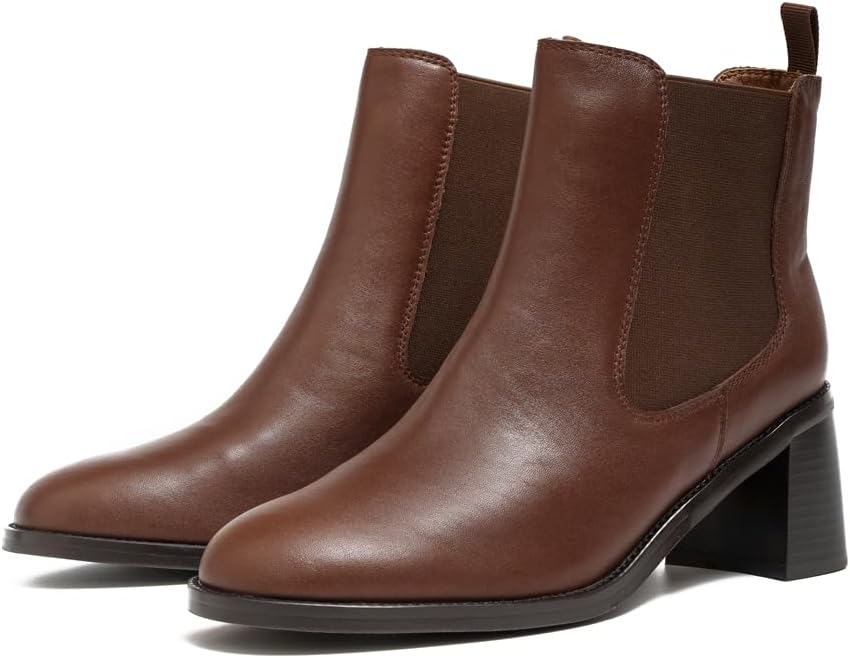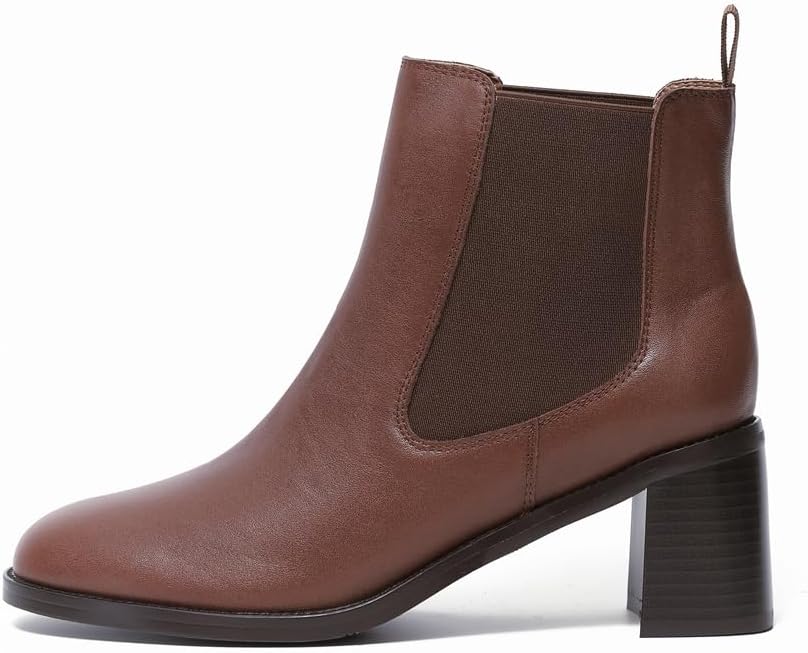 Женские кожаные ботинки челси на каблуке ONEENO, Brown