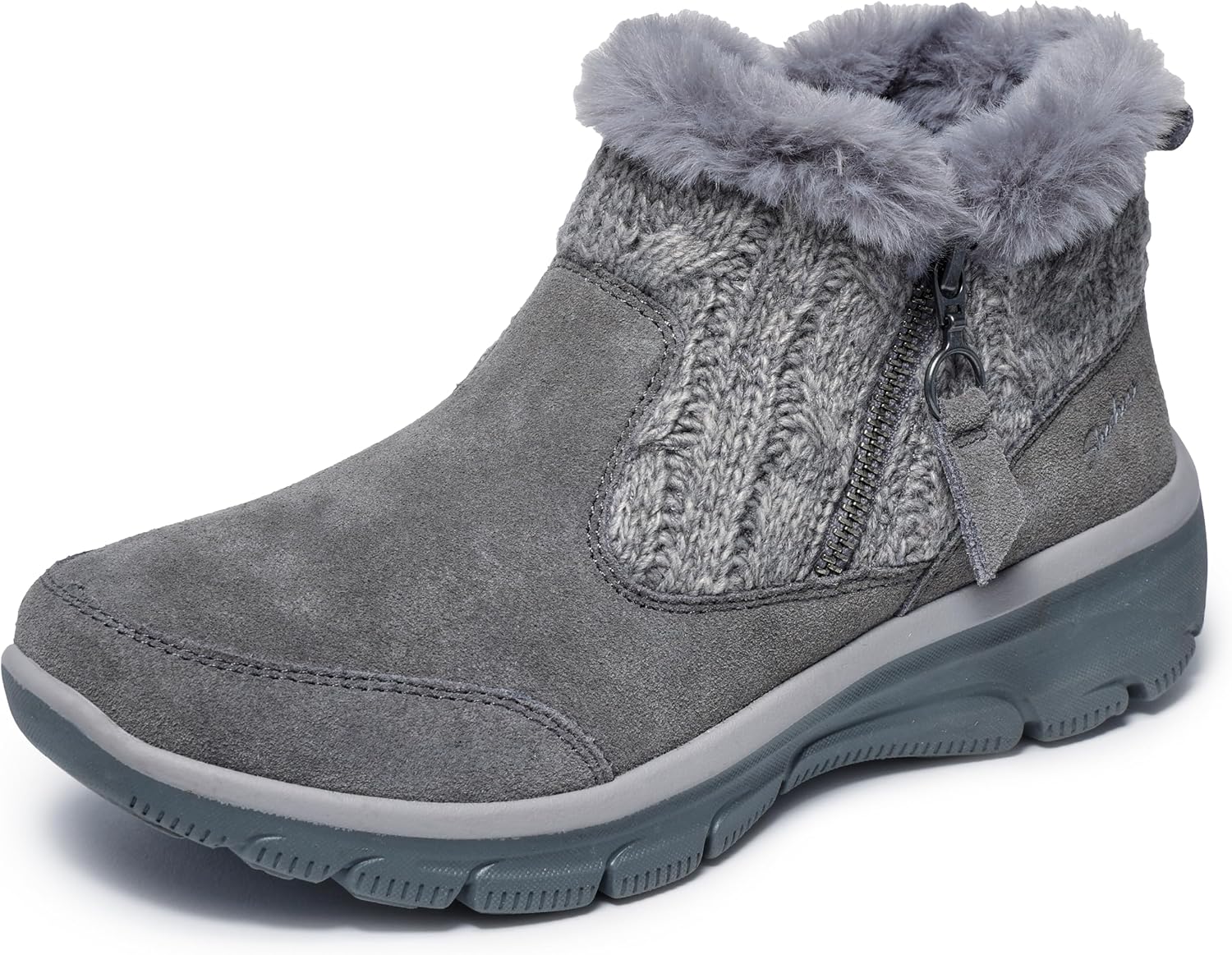 ПРЕМИУМ КОМФОРТ: Ощутите превосходную амортизацию с подкладкой из охлаждаемой памяти формы, идеально подходящей для женщин, ищущих обувь с эффектом памяти. ГОТОВНОСТЬ К ЛЮБОЙ ПОГОДЕ: Верх из замши, обработанный Scotchgard, с отделкой из трикотажа и уютной подкладкой из искусственного меха для тепла и водостойкости. ДИЗАЙН СВОБОДНОЙ ПОСАДКИ: Просторная зона носка и передней части стопы обеспечивает комфорт на протяжении всего дня в этих женских обувных изделиях с эффектом памяти. ПРОСТОТА НОСКИ: Удобная боковая молния для легкости надевания и снятия, гибкая подошва для надежного сцепления. УНИВЕРСАЛЬНЫЙ СТИЛЬ: Эти обувные изделия с эффектом памяти имеют модный дизайн ботильонов до щиколотки с высотой каблука 2,5 см для повседневного ношения