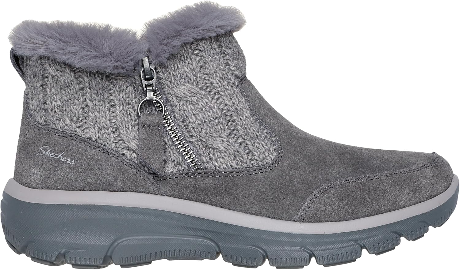 Окунитесь в уют и комфорт с этими женскими ботинками Skechers Relaxed Fit Easy Going Cozy Inn. Идеально подходят для тех, кто ищет женскую обувь с мемори-пенной стелькой, эти зимние ботинки сочетают стиль и функциональность. Верх из замши украшен модной отделкой в виде свитерного вязания и теплой искусственной меховой подкладкой, а стелька из пены с эффектом памяти с воздушным охлаждением обеспечивает исключительный комфорт. Боковая застежка-молния позволяет легко надевать и снимать обувь, а обработка Scotchgard помогает отталкивать воду. Гибкая подошва с протектором и каблук высотой 2,5 см делают эти женские ботинки с мемори-пенной стелькой стильными и удобными для повседневного ношения.