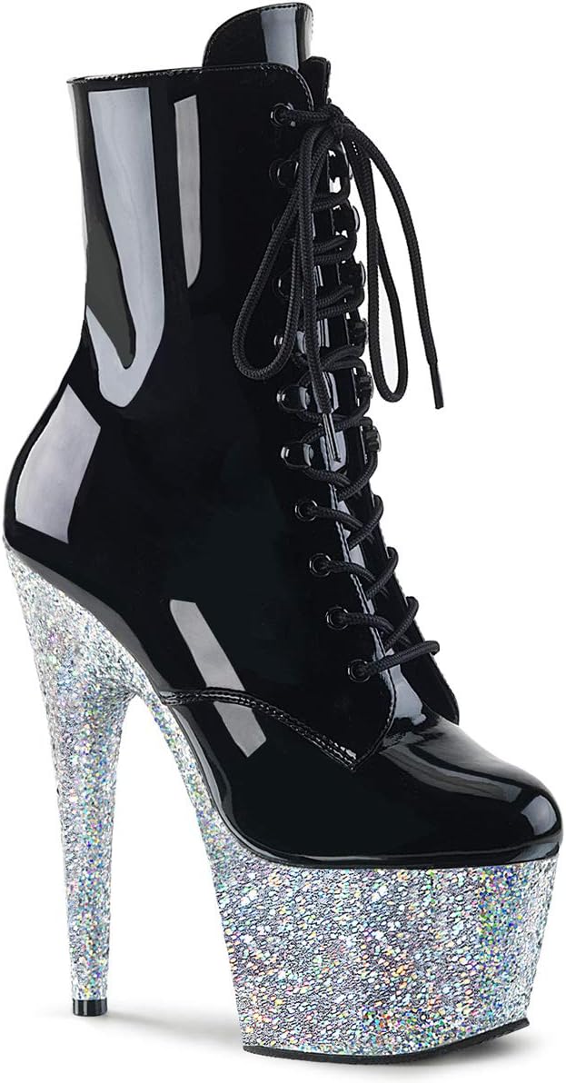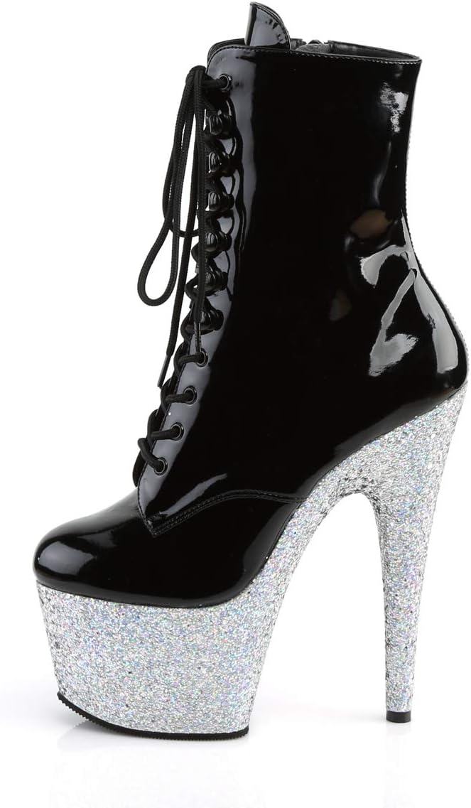 Ботильоны Adore от Pleaser, Black Patent/Silver Gltr
