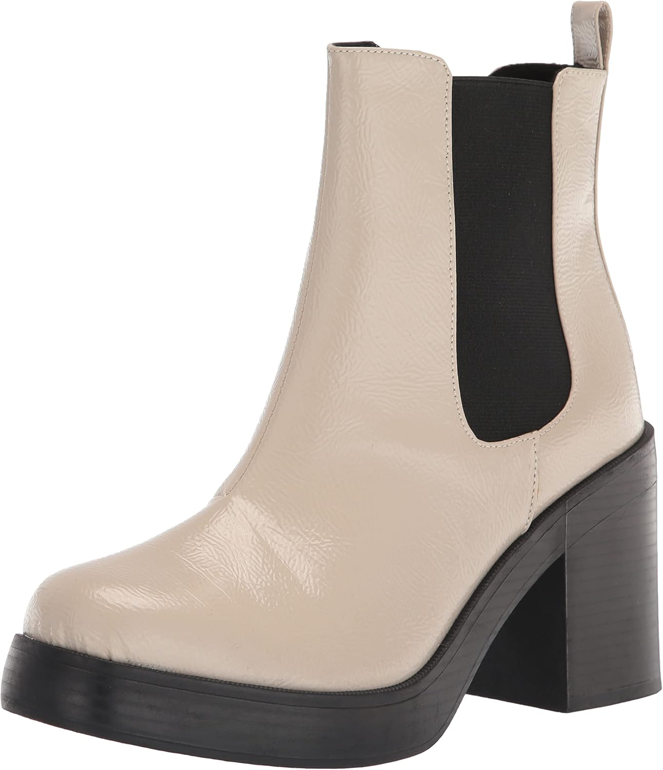 Dirty Laundry Groovy получил обновление - модель GUTSY! Эти лакированные ботильоны имеют эластичные вставки, квадратный носок, лакированный верх и массивный каблук.