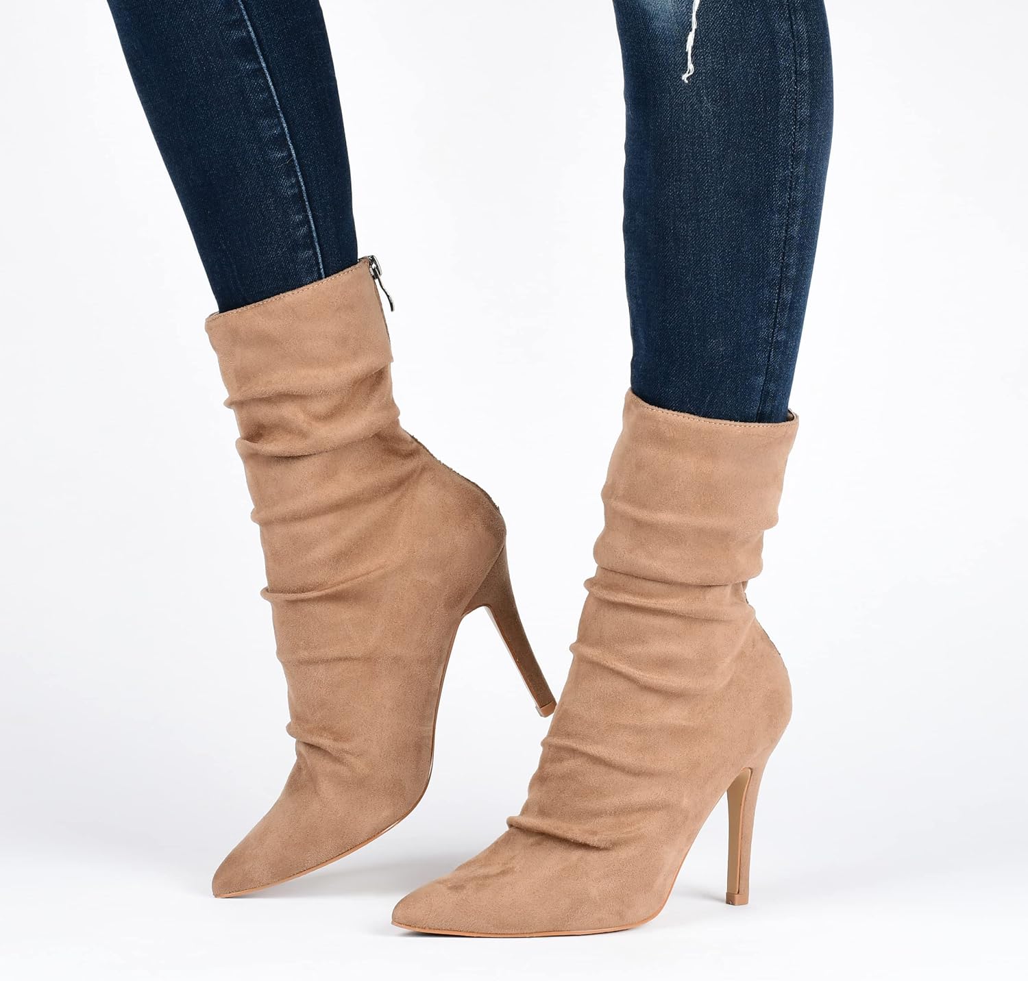 Высота каблука: 4 дюйма. Тип каблука: шпилька. Высота платформы: плоская. Высота голенища: 6 1/2 дюйма. Обхват верха: 11 дюймов. Ширина обуви: средняя. Тип застежки: молния сзади на каблуке. Форма носка: заостренная. Подкладка: ткань. Верхний материал: веганская кожа. Материал подошвы: искусственный. Стелька: с амортизацией. Все размеры являются приблизительными и измерены на обуви размера 6. Обратите внимание, что размеры могут незначительно отличаться в зависимости от размера.