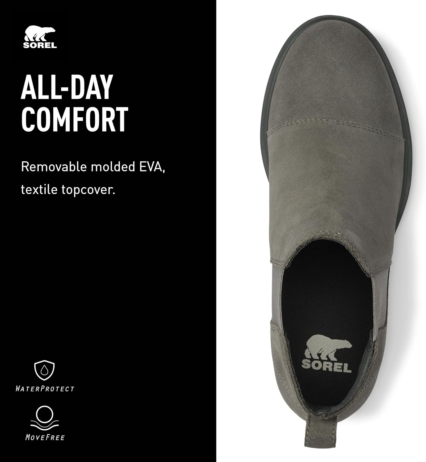 Стильные женские ботинки Челси: эти женские ботинки Челси для зимы идеально подходят для создания зимнего образа, чтобы вы могли быть в тепле, чувствовать себя комфортно и выглядеть мило, выходя из дома. Ботинки Челси для женщин: стильные зимние ботинки имеют верх из кожи и замши, что делает эту универсальную женскую обувь стильной и практичной; кожаные ботинки имеют текстильную подкладку. Ботинки Evie ll Chelsea: эти стильные женские ботинки оснащены резиновой подошвой для надежного сцепления; промежуточная подошва BPU-PU этой женской обуви удобная и легкая. Ботинки SOREL для женщин: эти ботинки Челси на липучках легко надевать и снимать, что делает их идеальными для насыщенных дней; стильные женские ботинки имеют литую резиновую подошву. Обувь для функциональности и моды: SOREL сочетает мастерство и стиль, создавая обувь на все сезоны, которая расширяет границы моды с упором на функциональность.