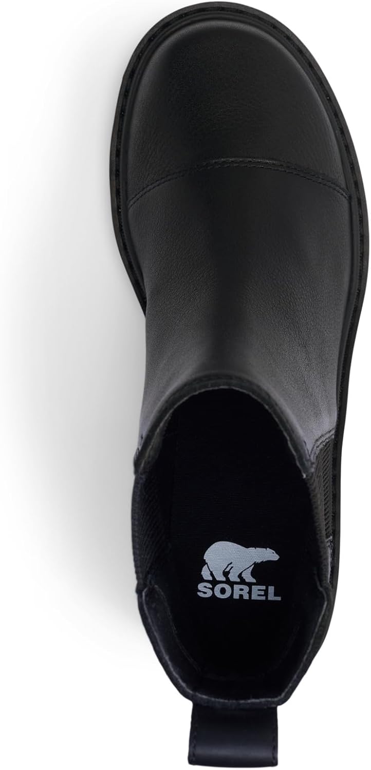 Модные зимние ботинки: Эти ботинки Челси от SOREL выполнены с верхом из кожи для долговечности и стиля; кожаные ботинки для женщин имеют подкладку из ткани и синтетических материалов.