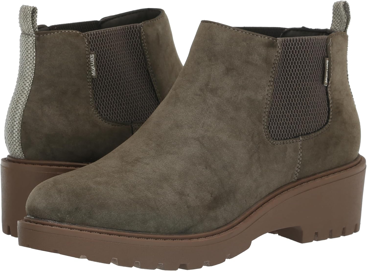 Каблук на платформе и подошва с протектором у ботинок Chelsea-стиля MUK LUKS Women's Francis - это только начало. Наденьте их, обратив внимание на текстурированную заднюю петлю и боковые вставки, чтобы познакомиться с нашей фирменной подкладкой Muk Luxe.