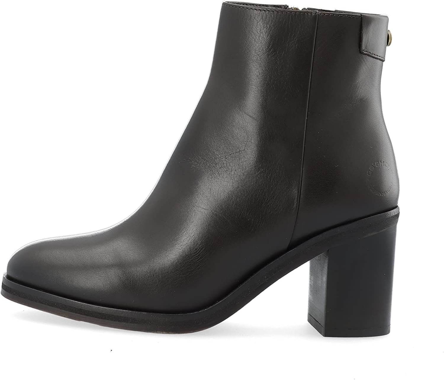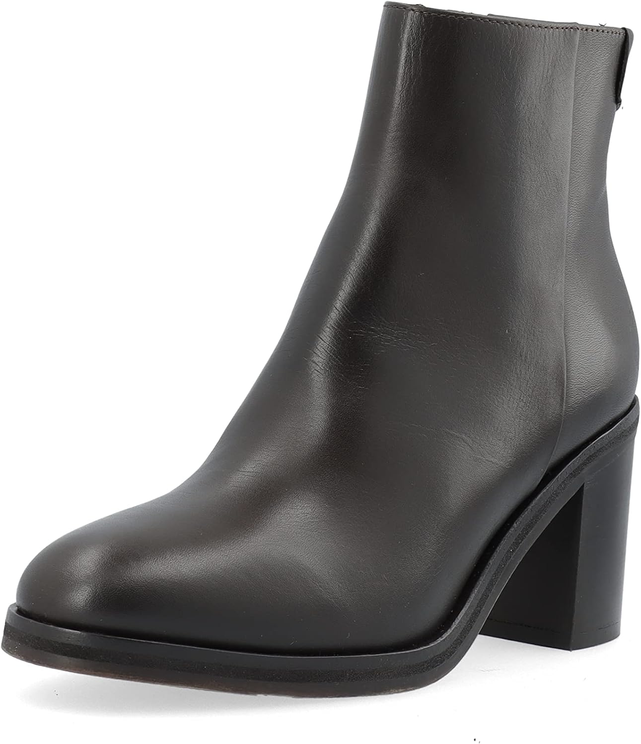 Элегантные ботильоны из гладкой кожи с застежкой-молнией и более узким блочным каблуком.