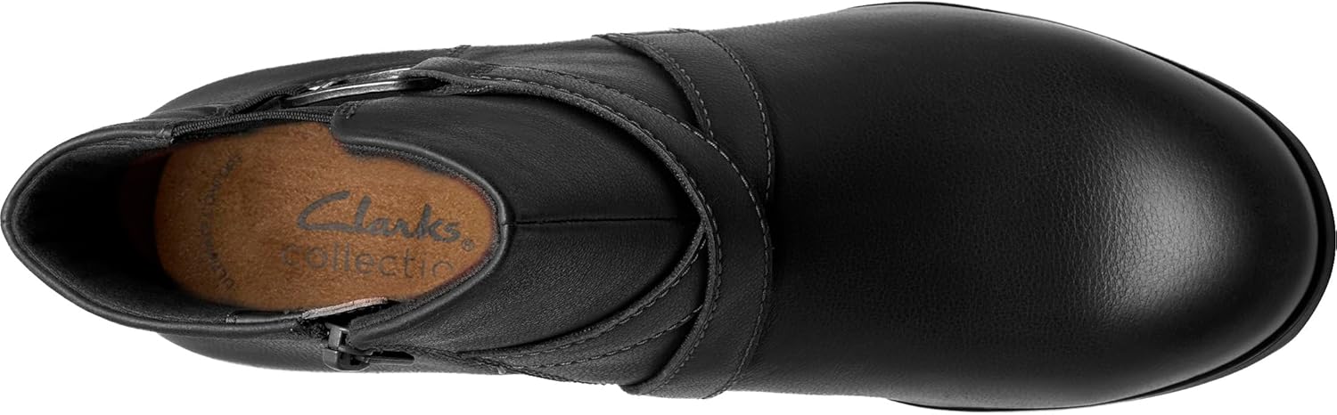 Универсальные ботильоны на каждый день Emily2 Henley оснащены удобным блочным каблуком для полной поддержки. Качественная кожа идеально облегает ногу, а фирменная амортизация Clarks Collection под стопой делает шаги легкими и свободными. - Верх из премиальной шоколадной кожи с декоративной пряжкой - Стелька Ultimate Comfort из вспененного материала обеспечивает длительное удобство - Подошва из ТПР (термопластичной резины) с хорошим сцеплением и гибкостью обеспечивает дополнительную стабильность и устойчивость - Высота каблука: 55 мм