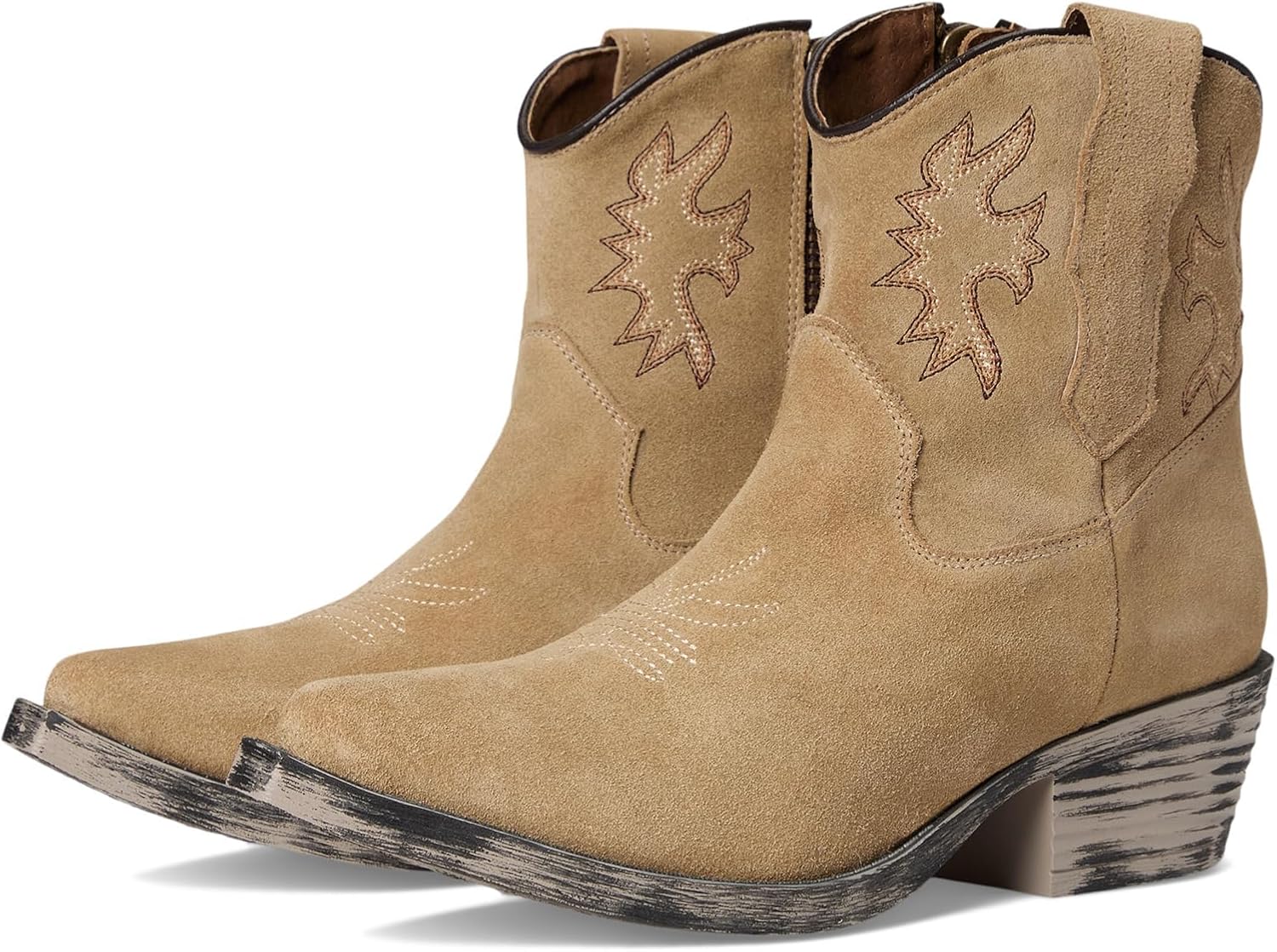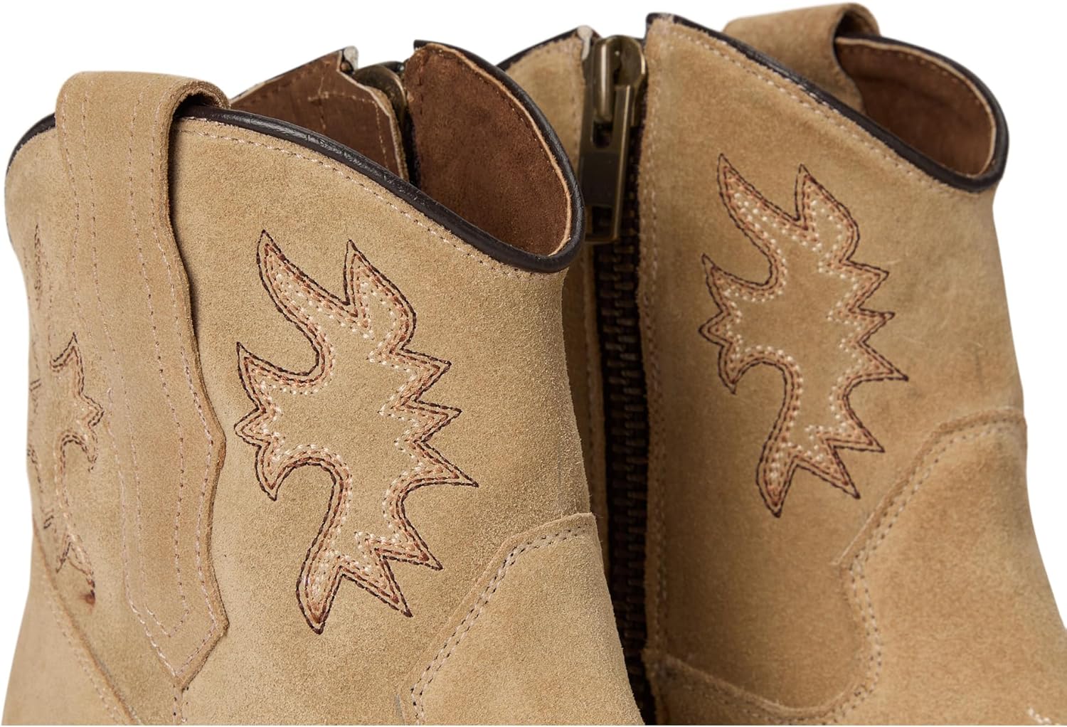 Женские замшевые лодочки taupe с вышивкой J на носке, каблук в ковбойском стиле