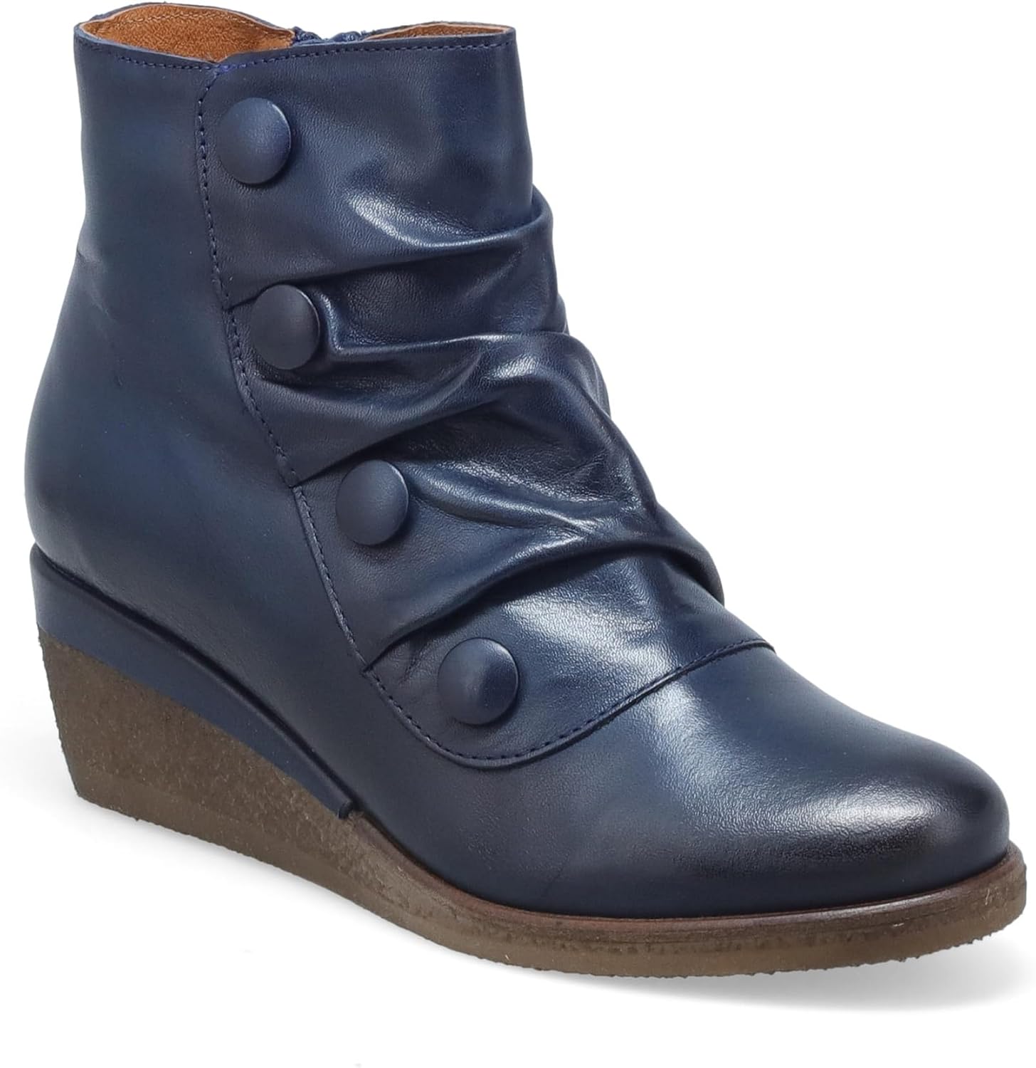 Игривые, изысканные и с идеальной дозой ретро - что не понравится в ботильонах на клиновидной подошве Miz Mooz Maxy. Слепленный клин, верх из мягкой кожи с сборками и ряд крупных декоративных пуговиц делают Maxy уникальным выбором для того, чтобы придать повседневным нарядам особый стиль.