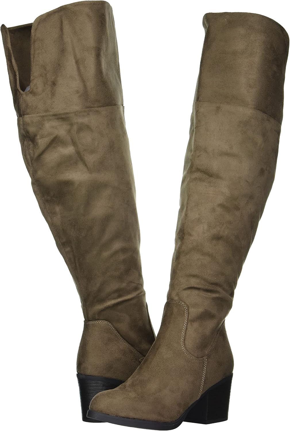 Войдите в самый стильный образ этого сезона с сапогами выше колена от Journee Collection(r). Верх из искусственной замши с декоративной строчкой поднимается выше колена для элегантного стиля. Подошва с имитацией древесины и устойчивый каблук завершают образ. Внутренняя застежка-молния. Округлый носок. Подкладка из ткани. Легкая мягкая стелька.