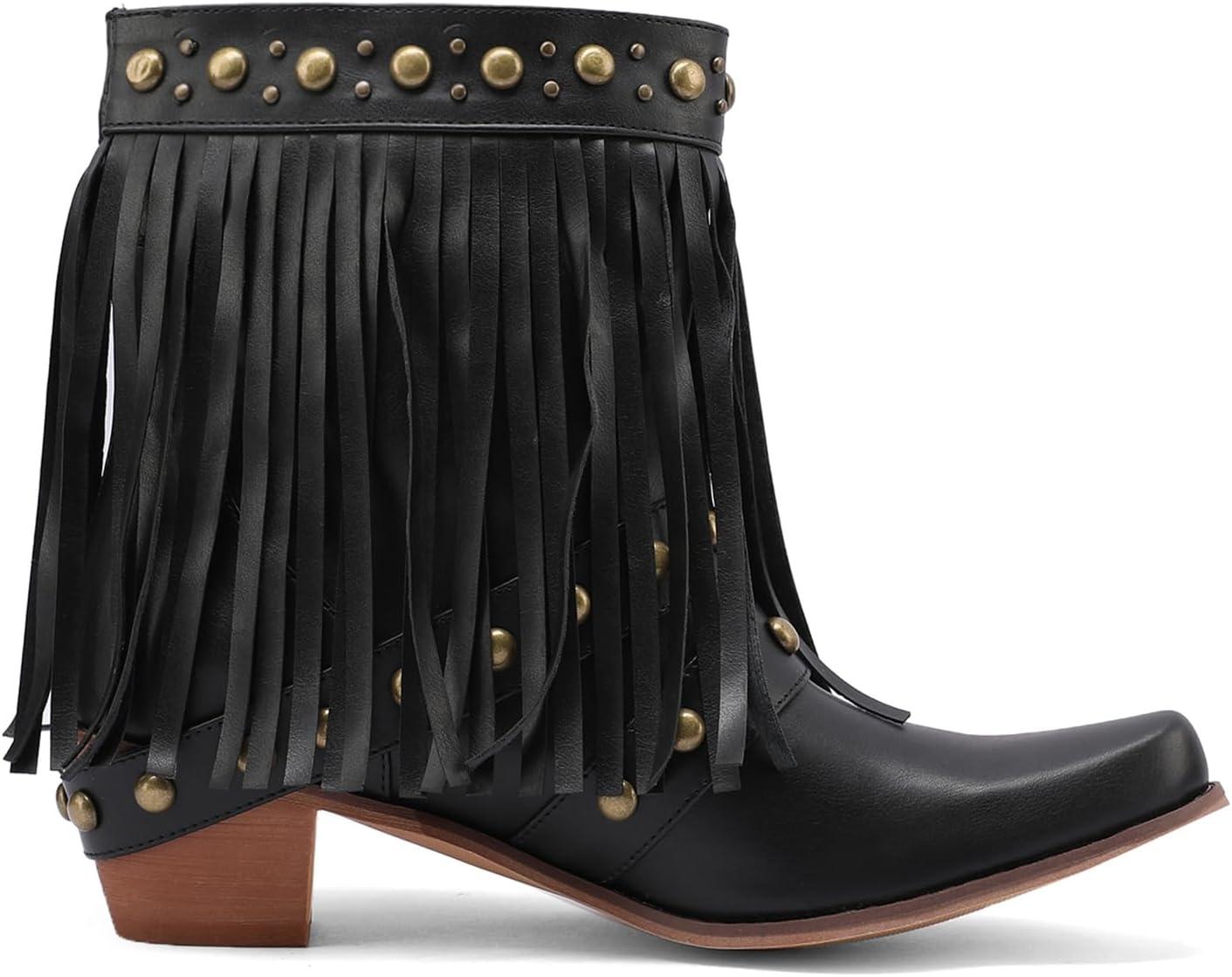 Ковбойские ботинки Scaoruki с бахромой, 069 Black