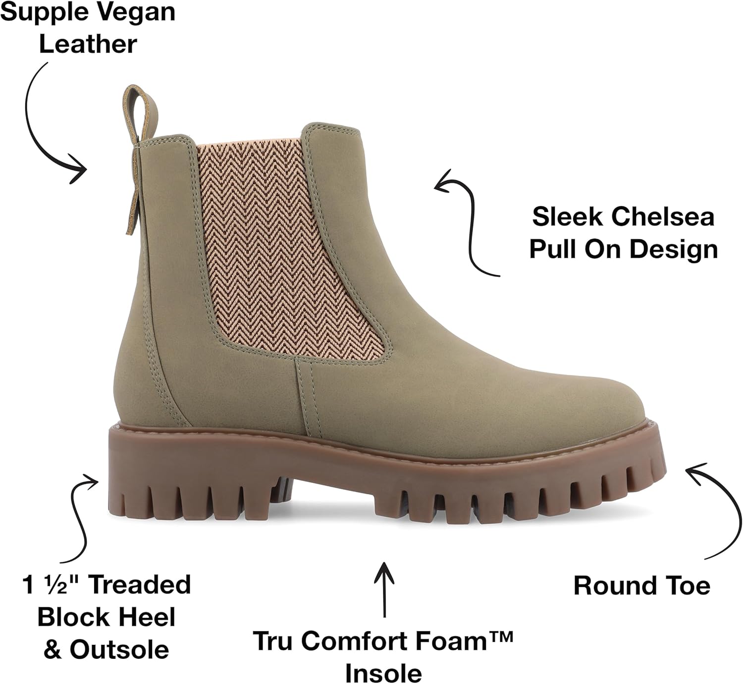 Высота каблука: 1 1/2 дюйма. Тип каблука: массивный каблук. Высота платформы: 1 дюйм. Высота голенища: 5 дюймов. Окружность верхней части: 10 1/2 дюйма. Ширина обуви: средняя. Тип застежки: без застежки. Форма носка: круглая. Подкладка: искусственная кожа. Верхний материал: веганская кожа. Подошва: синтетическая. Стелька: 4 мм. Все измерения являются приблизительными и сделаны на основе размера 6. Обратите внимание, что измерения могут слегка отличаться в зависимости от размера.
