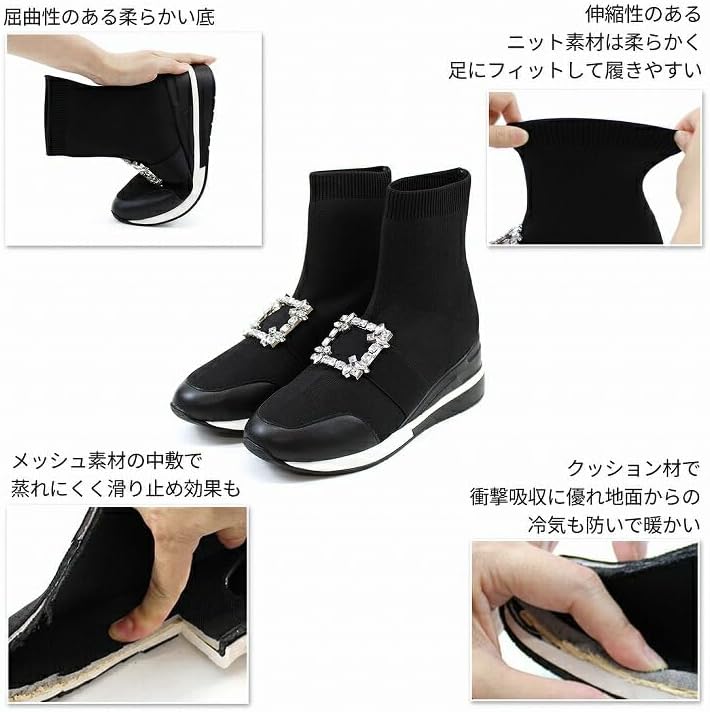 Эластичный вязаный материал мягкий, хорошо обхватывает ногу и легко надевается.