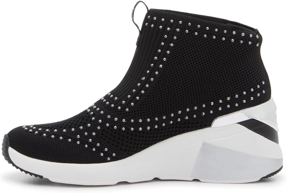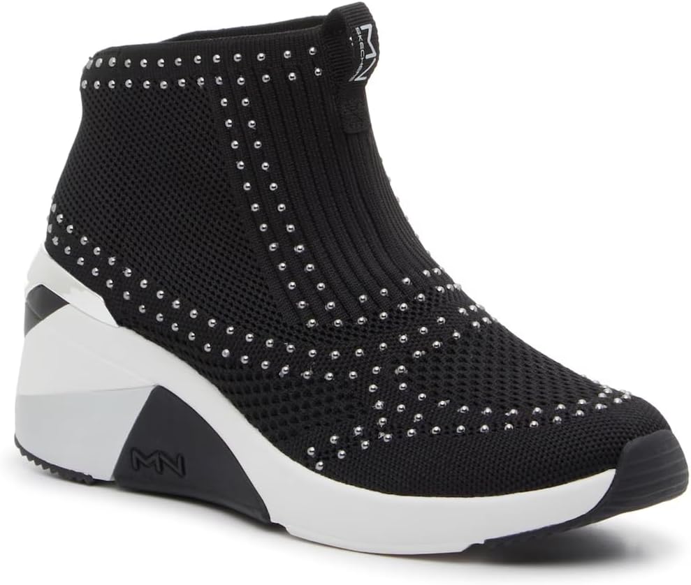 МОДНЫЙ ДИЗАЙН: Элегантный блестящий вязаный верх с модным разноцветным клиновидным каблуком создает эффектный акцент