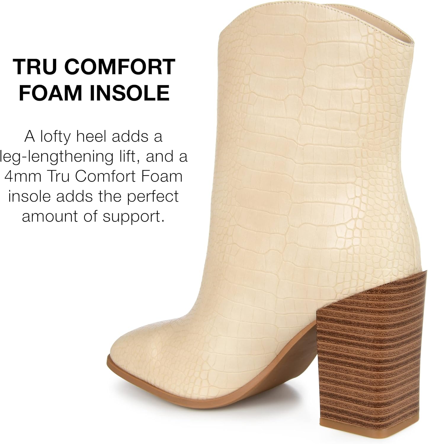 Западный силуэт с современным акцентом - Brekinn от Journee. Ботильоны с текстурированной под крокодила веганской кожей и квадратным носком. Стелька толщиной 4 мм обеспечивает идеальную поддержку, а каблук-топтель завершает образ. В Journee наши ботильоны подарят вам комфортный и стильный образ, идеально подходящий как для работы в офисе, так и для веселого вечера с подругами.