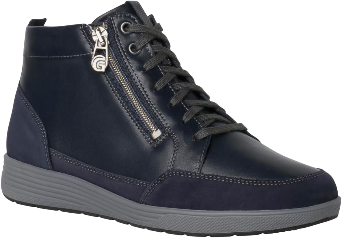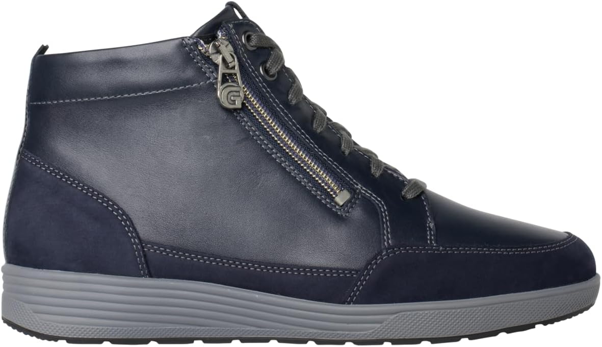 Спортивный дизайн встречается с повседневным шиком - наши высокие кеды Klara сочетают в себе элегантные материалы с изысканными деталями, такими как однотонная шнуровка или боковая молния. Ширина K обеспечивает ноге достаточно места, чтобы она могла естественно двигаться при ходьбе. Тем не менее, Klara выигрывает благодаря чистому силуэту, который мягко и выгодно подчеркивает стопу. Удобная обувь до щиколотки впечатляет простотой гладкой кожи с аппликациями из нубука - и отлично сочетается с джинсами, вязаным платьем или кожаной курткой. Контрастная подошва с ребристым рисунком особенно легкая и противоскользящая. В рамках нашей коллекции Sensitive обувь выигрывает за счет специальной внутренней отделки от Ganter, которая особенно комфортна для стопы благодаря мощной подкладке. Слои микрофибры и флиса имеют серебристое покрытие, которое обладает антибактериальным эффектом и положительно влияет на климатический комфорт. Стелька Vario из корка легко заменяется на собственную. стельки при необходимости. Наш вывод: Klara имеет потенциал стать любимой обувью для широкой стопы