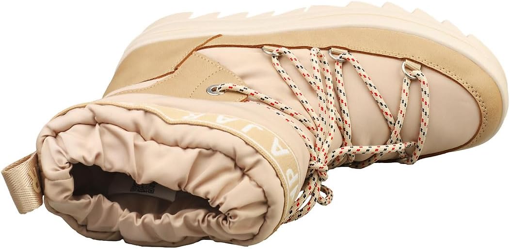 *Пухлый нейлон с тесьмой с вязаным логотипом *Легкий вход с большой нейлоновой липучкой для быстрой регулировки *Верх водонепроницаемый, швы герметизированы *Подошва Toboggan с протектором, платформа 1 дюйм и каблук 1,5 дюйма *Комфортная температура до -30°C