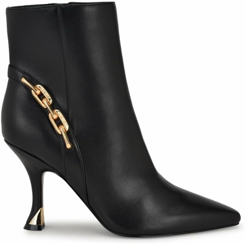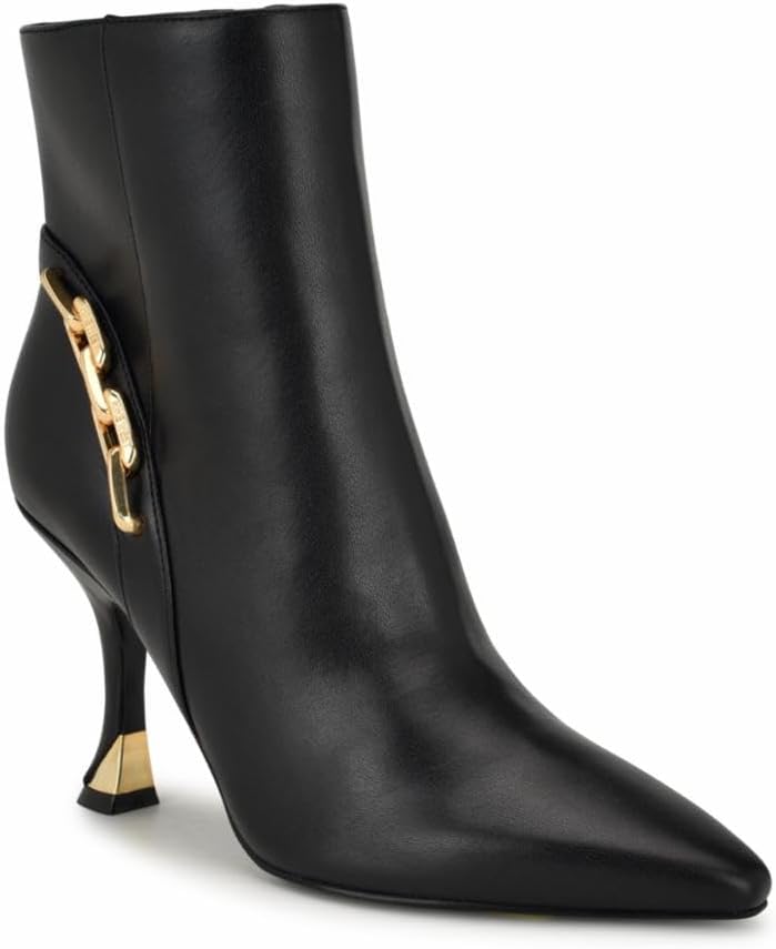 Произведите впечатление с ботильонами Nine West Chaine. Они имеют заостренный носок, стильный сужающийся каблук и отделку золотой цепочкой. Chaine - идеальная базовая вещь для гардероба! Основанная в 1978 году, компания Nine West вдохновляет женщин покорять мир со стилем, от дня до ночи.