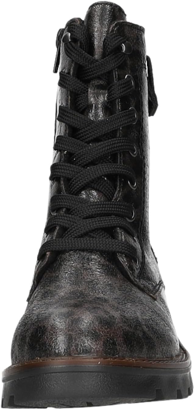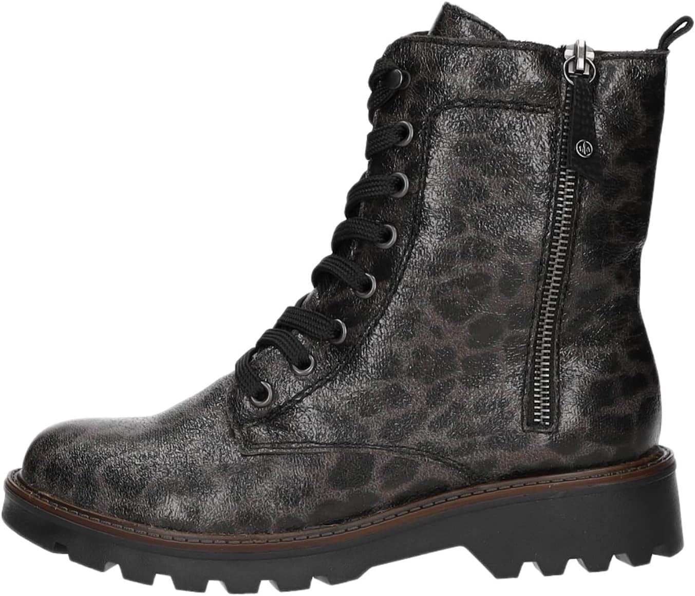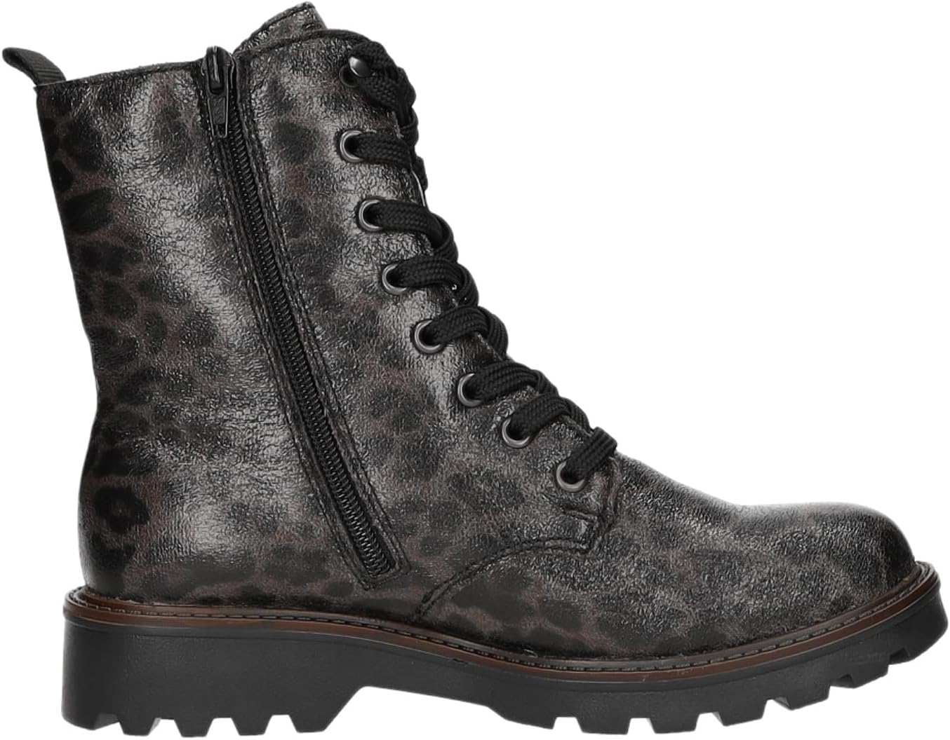 Байкерские ботинки - победа! Эти веганские серые байкерские ботинки Rieker были тщательно обработаны. Умное сочетание шнуровки и молнии облегчает надевание и снятие. Леопардовый принт завершает образ и придает эффектный вид. Противоскользящая подошва впечатляет, а сверхмягкая стелька обеспечивает дополнительный комфорт. Мягкая теплая подкладка сохраняет ноги уютными и теплыми. Больше вам и не нужно ничего!