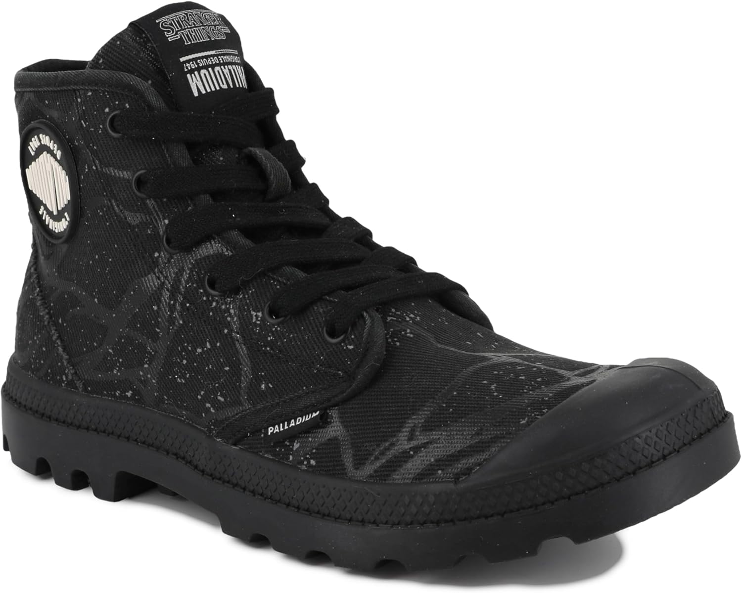 Вдохновленная пятым сезоном «Stranger Things», эта специальная версия PAMPA посвящена Джиму Хопперу и его путешествию по обратной стороне. Изготовлена из черного органического холста с эффектом каменной стирки и пылью, отражающим суровый мир, который он исследует. Сверху нанесены графические элементы в виде вина, удалите Hawkins Beneath Tunnel. Одна четверть оснащена резиновой нашивкой Palladium, другая - вышитым логотипом Stranger Things. На пятке размещен слоган пятого сезона: «Одна последняя странная авантюра». Дань финальной главе - и духу исследовательских приключений Palladium. Завершена фирменной резиновой подошвой и носком PAMPA и прочными кроссовками для любых поверхностей.