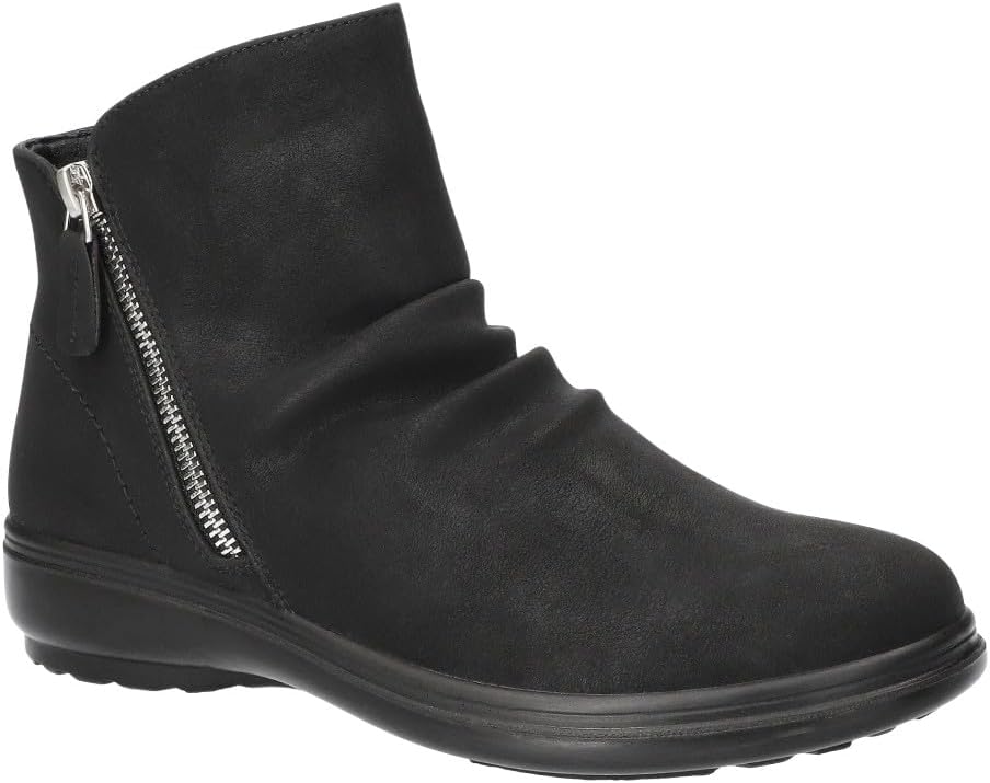 Каблук 0,75 дюйма, современный дизайн с рюшами и двойной молнией Конструкция Comfort Wave для комфорта на весь день Легкая и гибкая подошва Двойная молния обеспечивает легкость надевания и снятия Улучшена ультралегкой съемной стелькой Easy Motion от Easy Street для комфорта на весь день