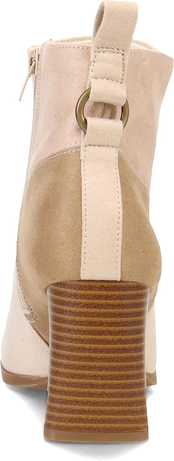 Верх из искусственной кожи или эко-микрозамши с заостренным носком, боковой молнией, задней петлей и металлическим украшением на пятке Стелька, носовая часть, задник, подкладка и эко-микрозамша частично изготовлены из переработанных материалов Комфортная система Soft System обеспечивает поддержку, гибкость и амортизацию на весь день Подошва с хорошим сцеплением обеспечивает дополнительную устойчивость Оптимальная высота каблука 3 1/4 дюйма, сужающийся блочный каблук