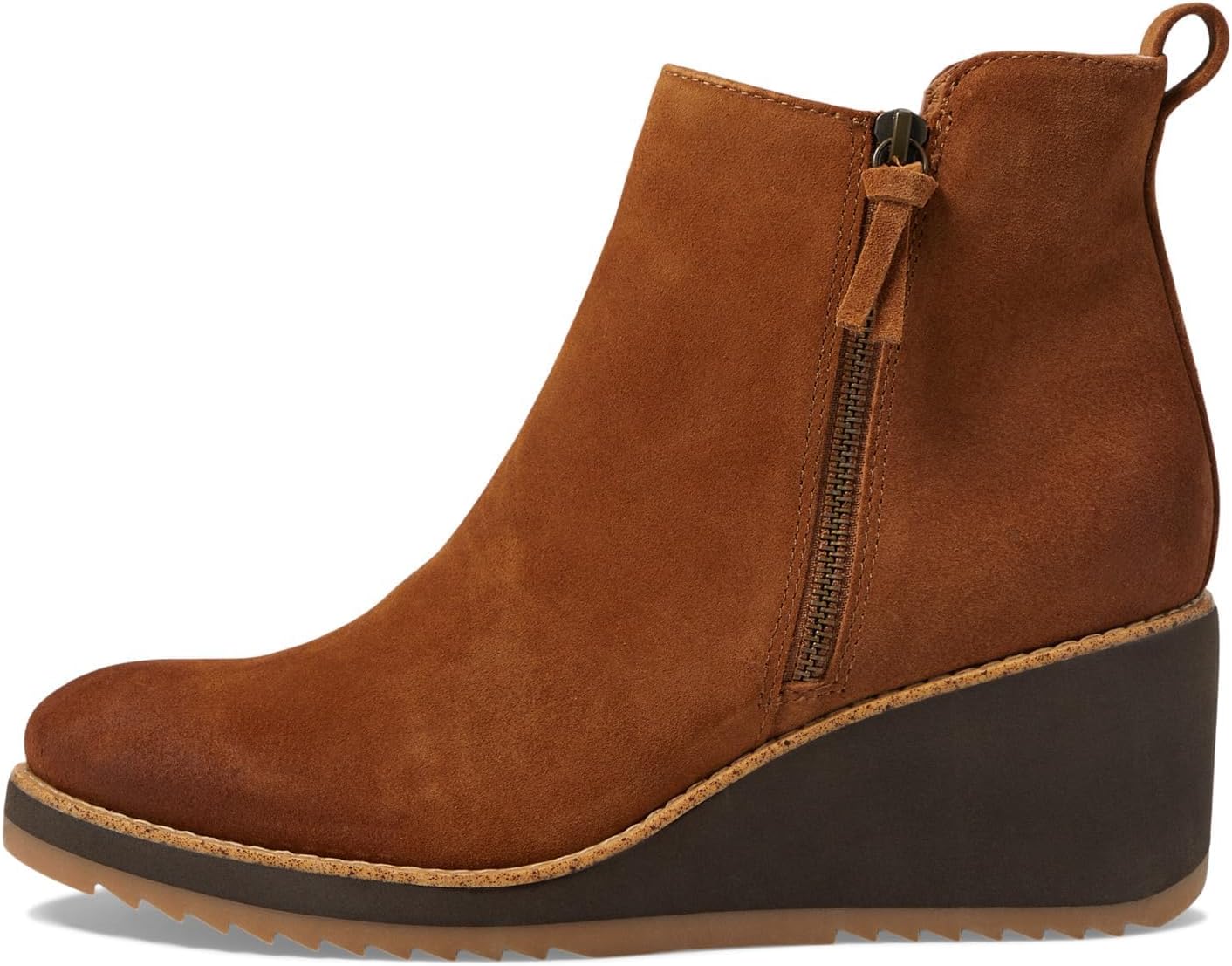 Водоотталкивающий верх из итальянской замши с герметичными швами для защиты от воды Боковая молния для легкого надевания и снятия Примерно 7 см обернутый клин Подошва из TPR и EVA с зубчатым протектором Двухцветный рант
