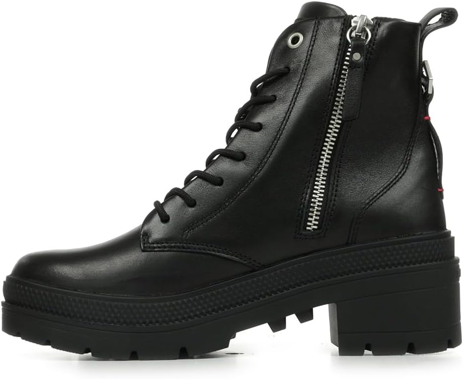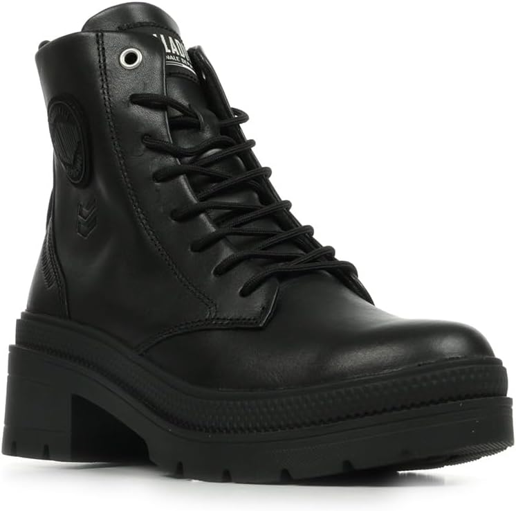 Представляем PALLARISE Ranger Leather - стильное и вдохновленное рок-культурой дополнение к нашей женской коллекции. Эти ботинки оснащены приподнятым каблуком для изящного подъема, а последняя версия обуви разработана так, чтобы создавать элегантный и женственный силуэт. Сшиты из мягкой кожи наппа, они демонстрируют наш стиль с рукавом и отсутствием носочной части, подчеркивая городскую утонченность. Продуманные детали включают круглую микрофибровую нашивку с выпуклым логотипом Palladium и тисненой военной графикой. Стильная тканевая обивка на задней части сочетается с уникальным металлическим аксессуаром на петле. Внутренняя молния придает этой элегантной и дерзкой модели дополнительную практичность и делает PALLARISE RANGER LEATHER универсальной вещью для любого модного гардероба.