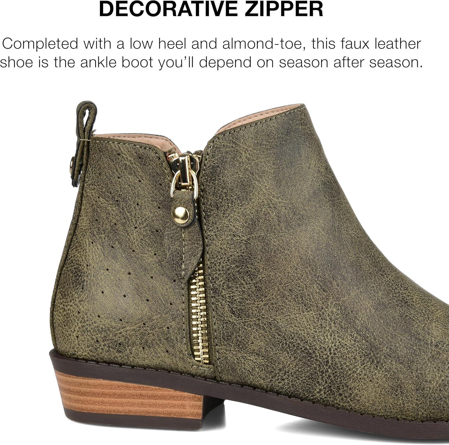 Ellis от Journee - это самое милое пополнение вашей коллекции ботильонов. Эта модель имеет внутреннюю молнию и декоративную наружную молнию, состаренную окраску по всей поверхности и текстуру с небольшими отверстиями на каблуке. Форма носка миндаль и низкий устойчивый каблук завершают этот дизайн. В Journee наши ботильоны обеспечат вам комфортный и стильный образ, идеально подходящий как для офиса, так и для веселого вечера с подругами.