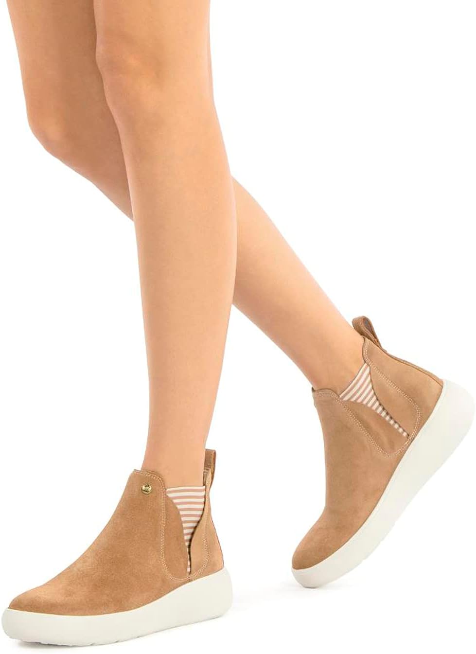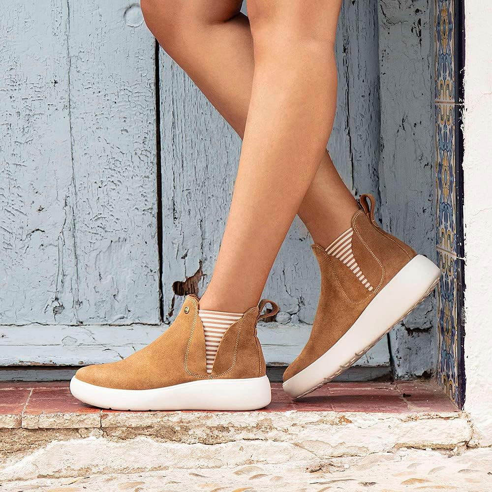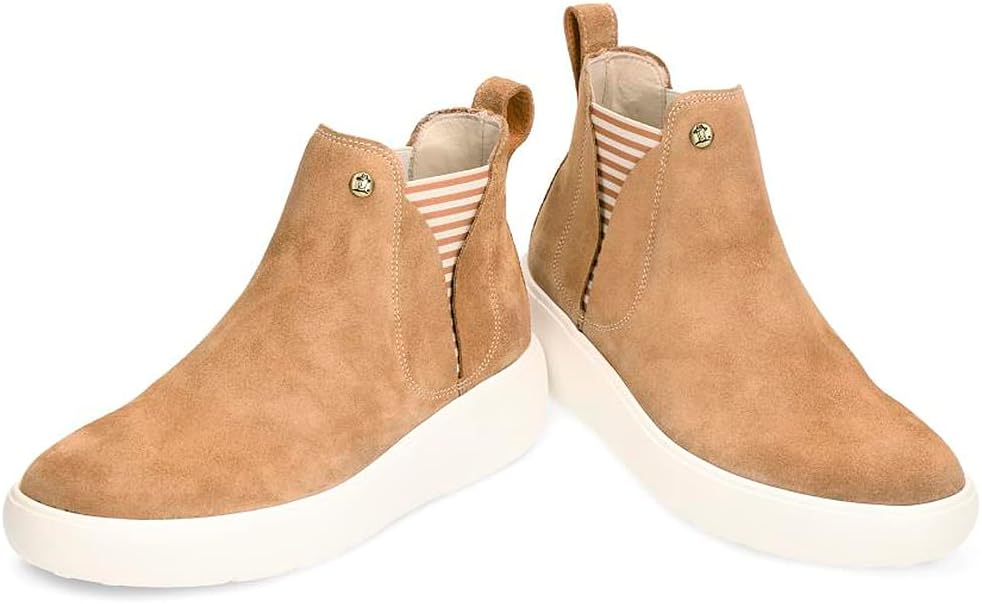 Женский ботинок на плоской подошве. Натуральная замша. Кожаная подкладка. Съемная анатомическая стелька. Легкая, гибкая, прочная и нескользящая подошва из резины EVA. Сделано в Испании
