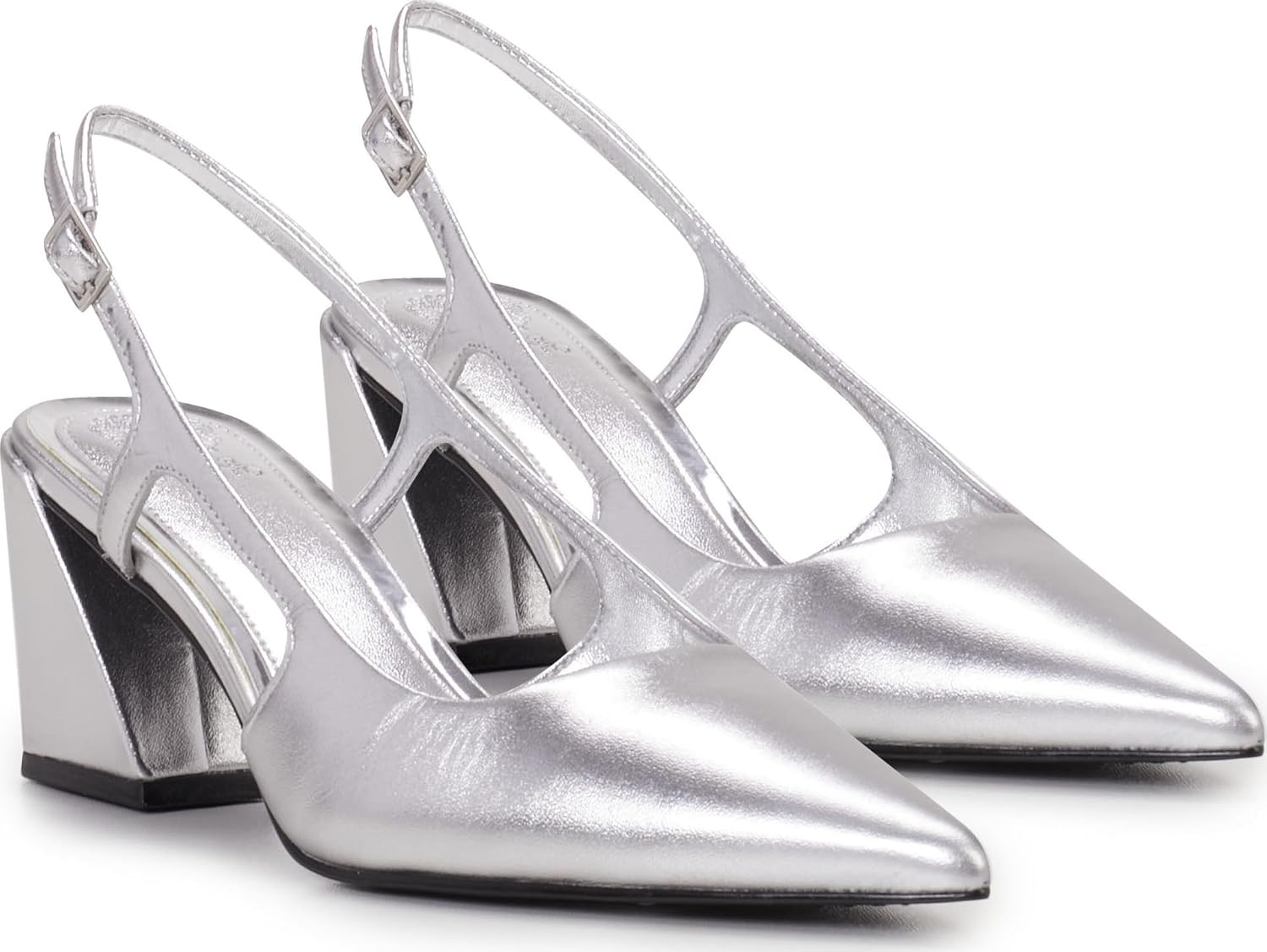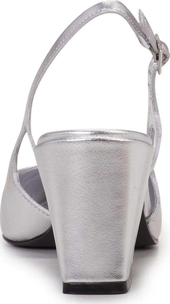 Туфли на среднем каблуке Sindree с ремешком на пятке имеют массивный каблук. Носок заостренный и украшен геометрическими вырезами по бокам. Каблук расширен и покрыт однотонной кожей. Доступны в различных цветах и отделках, эти туфли станут завершением разнообразных нарядов. Мягкая стелька и регулируемый ремешок на щиколотке обеспечивают комфорт.