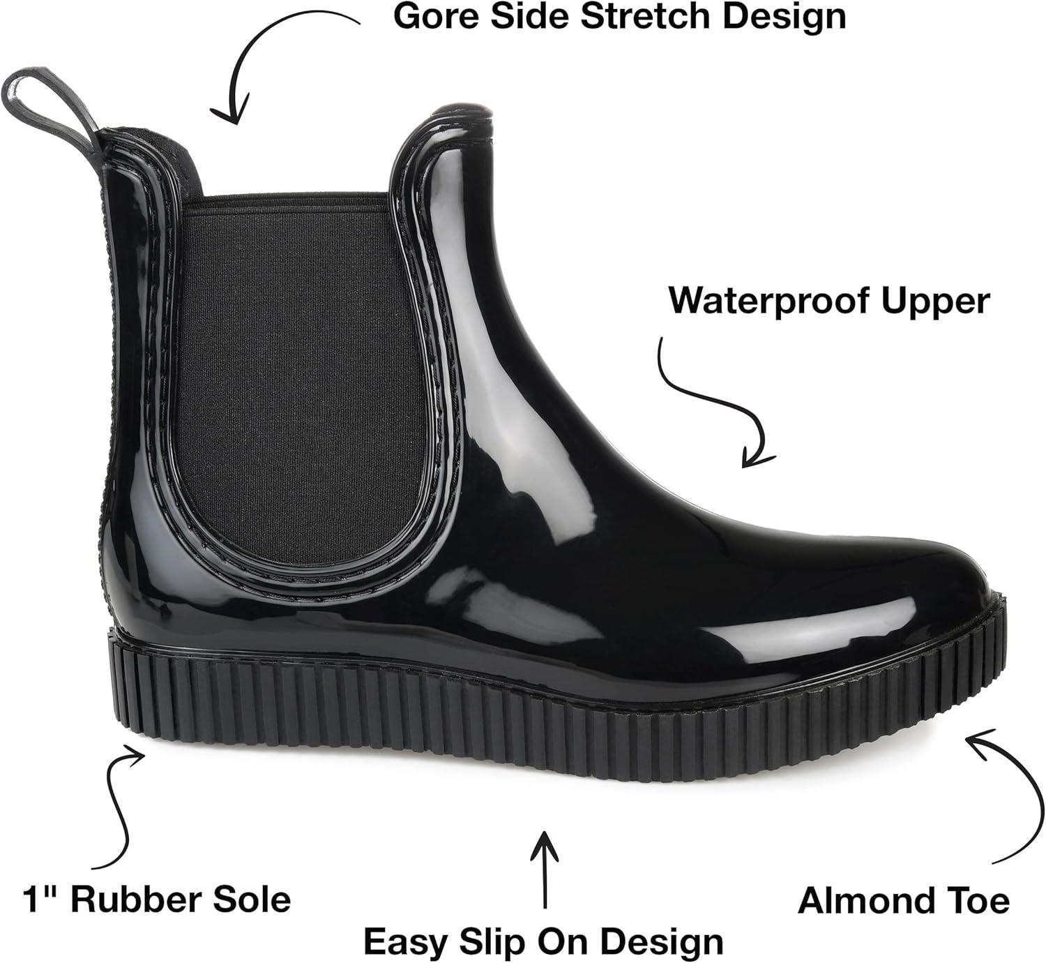Вневременной силуэт, полностью выполненный из резины для водонепроницаемого дизайна. Модель Drip от коллекции Journee легко надевается благодаря петле на пятке и боковой эластичной вставке. Прочная подошва и стелька Tru Comfort Foam толщиной 12 мм завершает эту необходимую обувь для дождливой погоды. В коллекции Journee наши модели ботинок сделают ваш наряд еще более стильным. Они добавят тот завершающий штрих, который придаст вашему образу вид прямо из модного журнала.