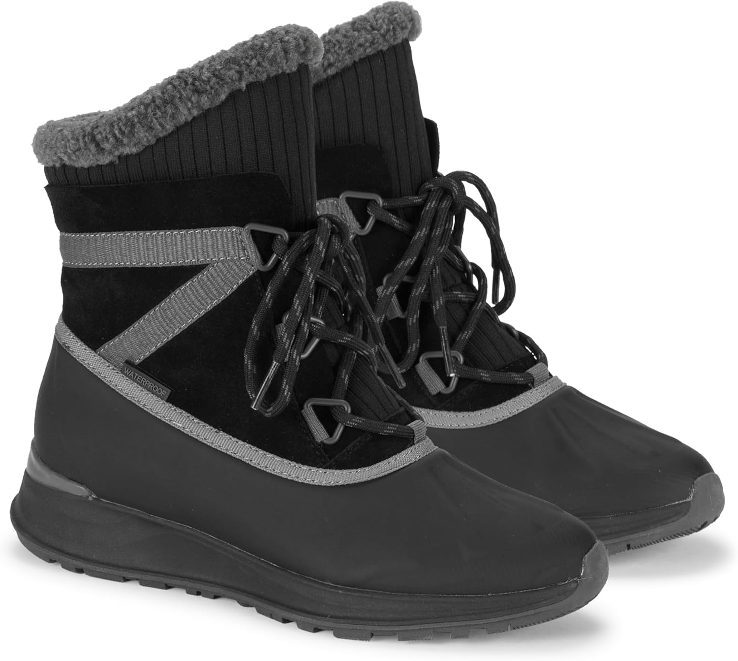 Протекторная подошва для лучшего сцепления; мягкая подкладка для тепла и комфорта. Шнуровка спереди с внутренней молнией для легкого надевания и снятия