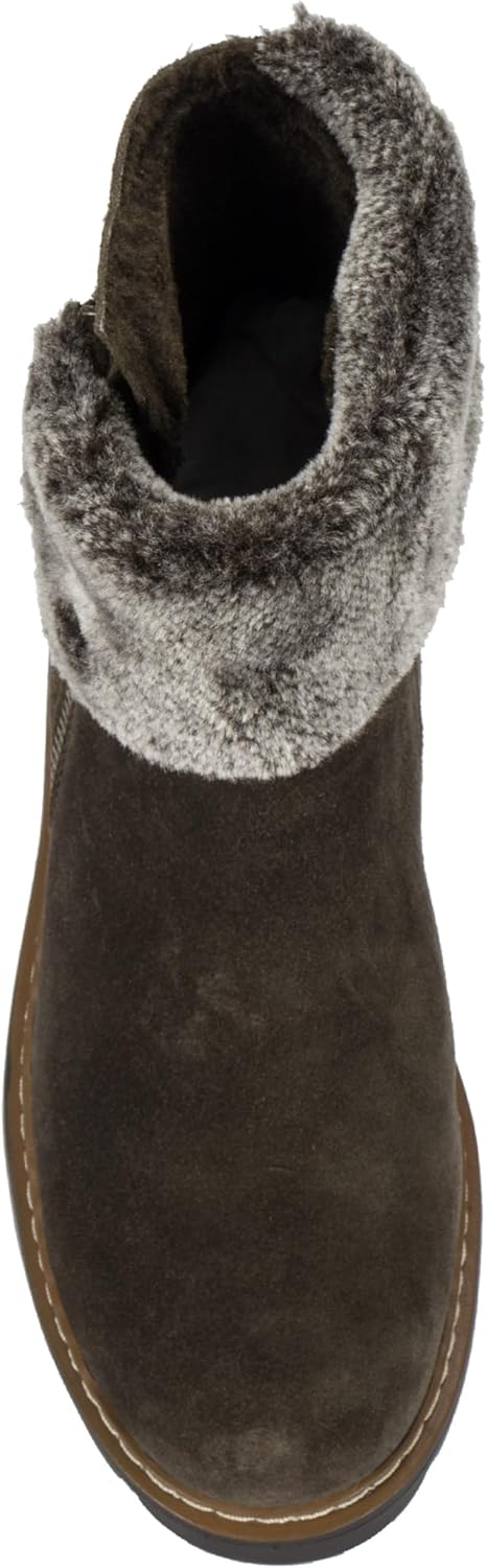 Ботинки Baretraps Wyoming для холодной погоды имеют уютный стиль, который будет согревать вас всю зиму. Наша технология Stay-Dry System защитит ваши ноги от влаги, а такие стильные элементы, как асимметричный манжет из искусственного меха, водоотталкивающий верх из замши на голенище и подошва с рельефным протектором с подушечкой для ступни, обеспечат комфорт на весь день.